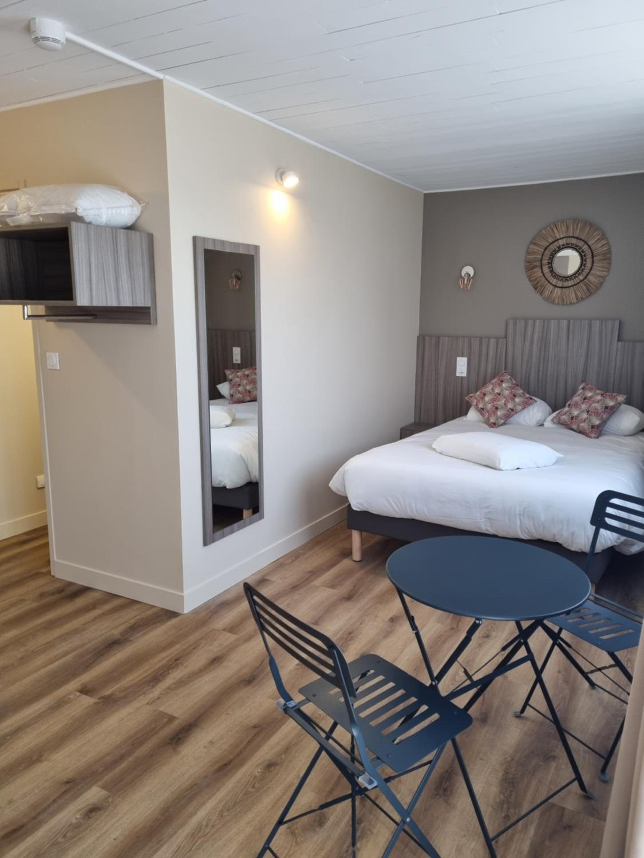 Endroit très calme, emplacement de parking juste devant la chambre, chambre spacieuse, lits confortables