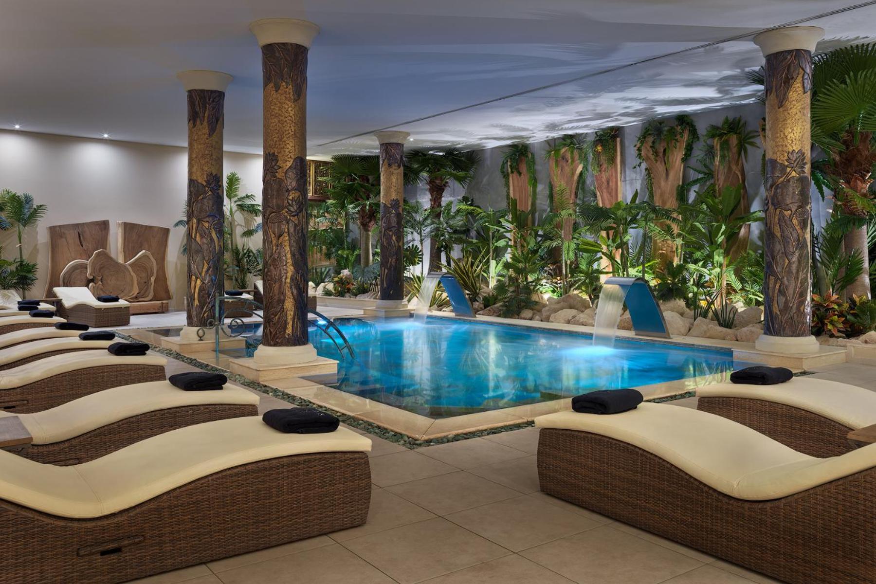 Indulge in a culinary journey with four restaurants, three bars, and options for continental and buffet breakfast. Enjoy five outdoor swimming pools, a fitness centre, spa, and wellness center with a hammam and sauna.