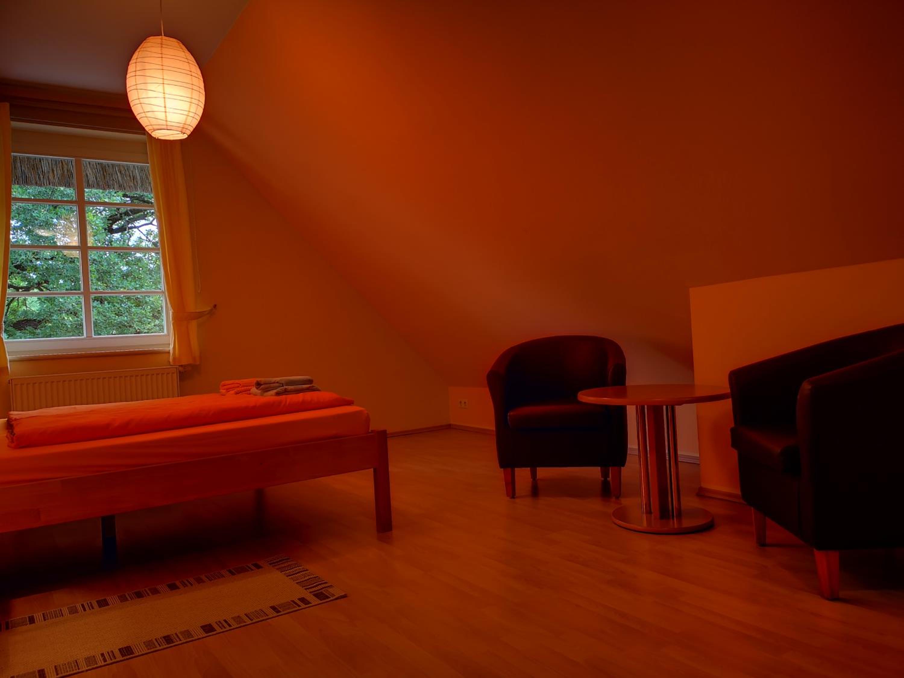 Experience a unique stay at Golfcentrum Schloss Karnitz Rügen, nestled in a charming historic thatched-roof building. The bright rooms with wooden floors offer a cozy retreat after a day of exploring.