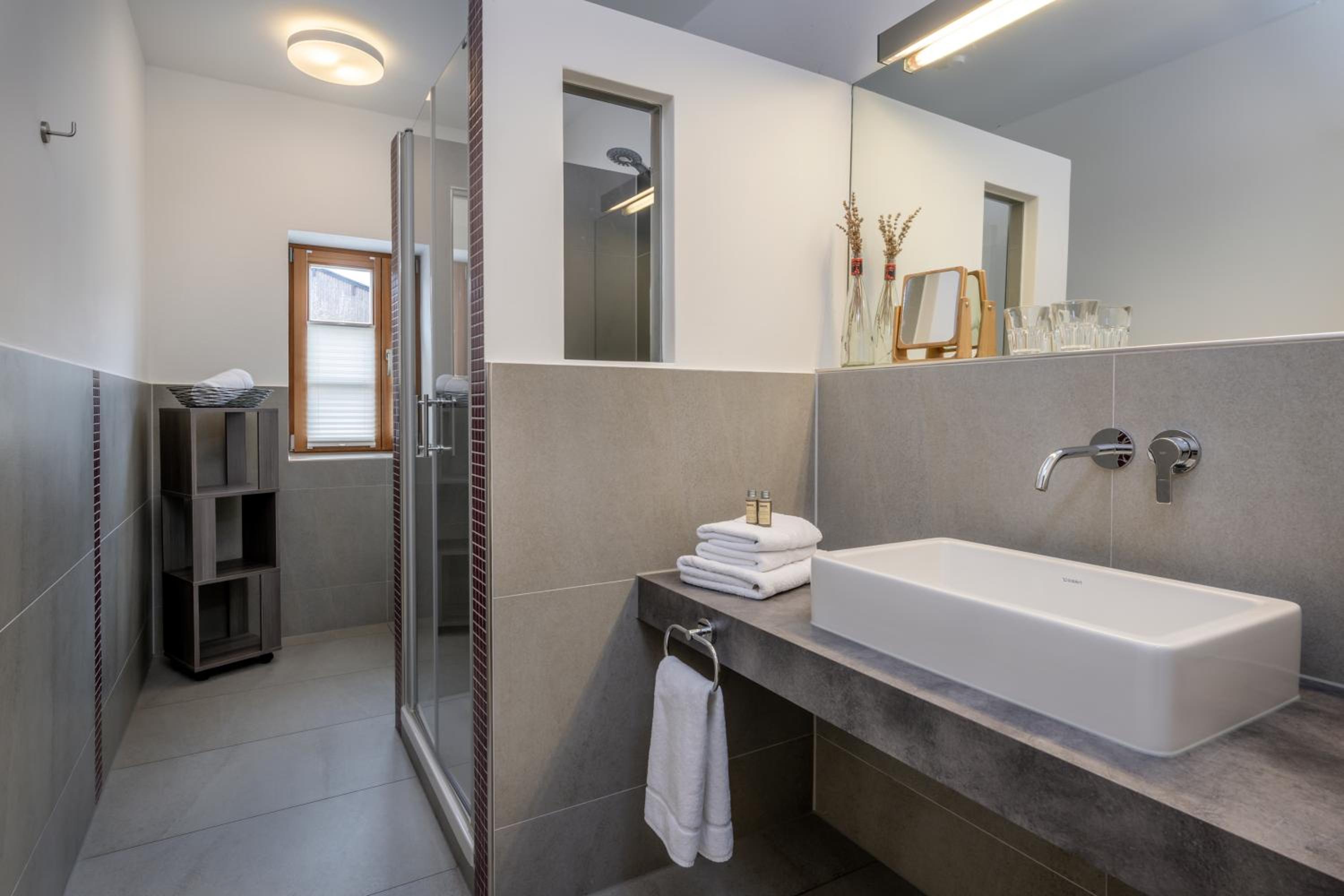 Schönes Haus, herzlicher Empfang, großes Zimmer, modernes großes Bad, tolle Dusche, bequemes Bett, alles sehr geschmackvoll und hochwertig saniert und eingerichtet.