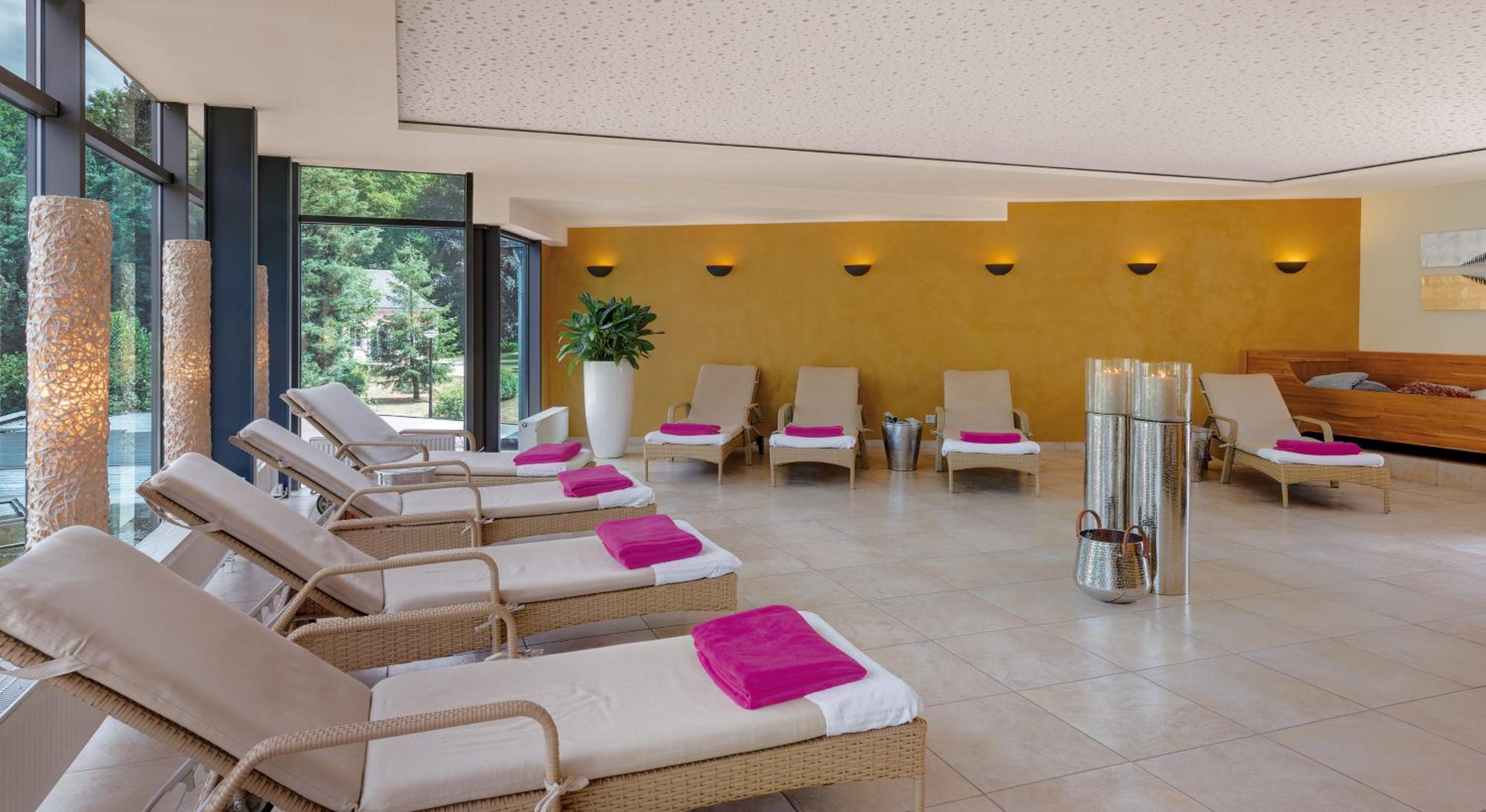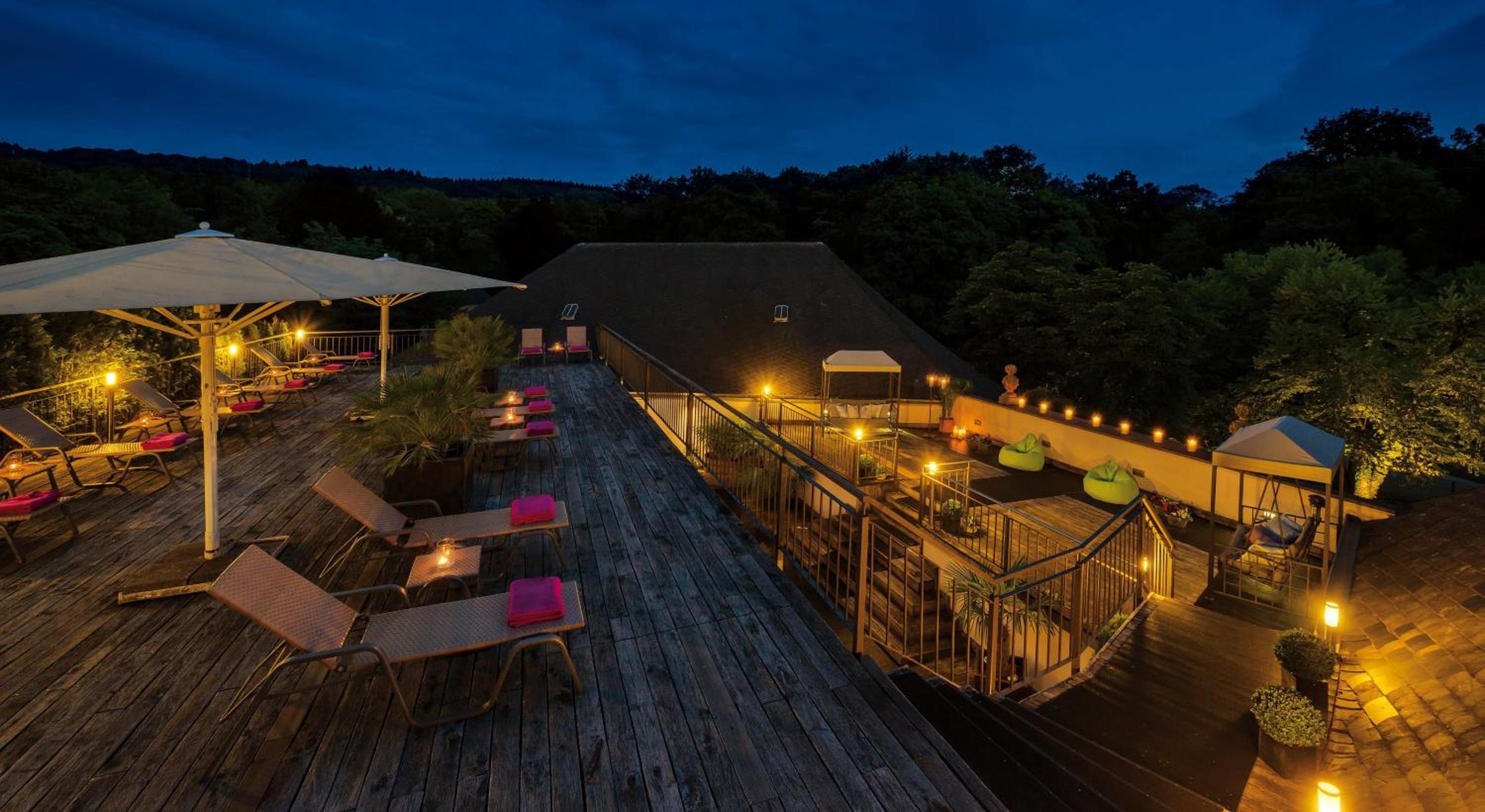 Unwind at the 700 m² spa center, complete with saunas, steam rooms, and a rooftop terrace. Stay active at the gym or simply relax in luxury. The perfect retreat after exploring nearby attractions like Arena Trier.