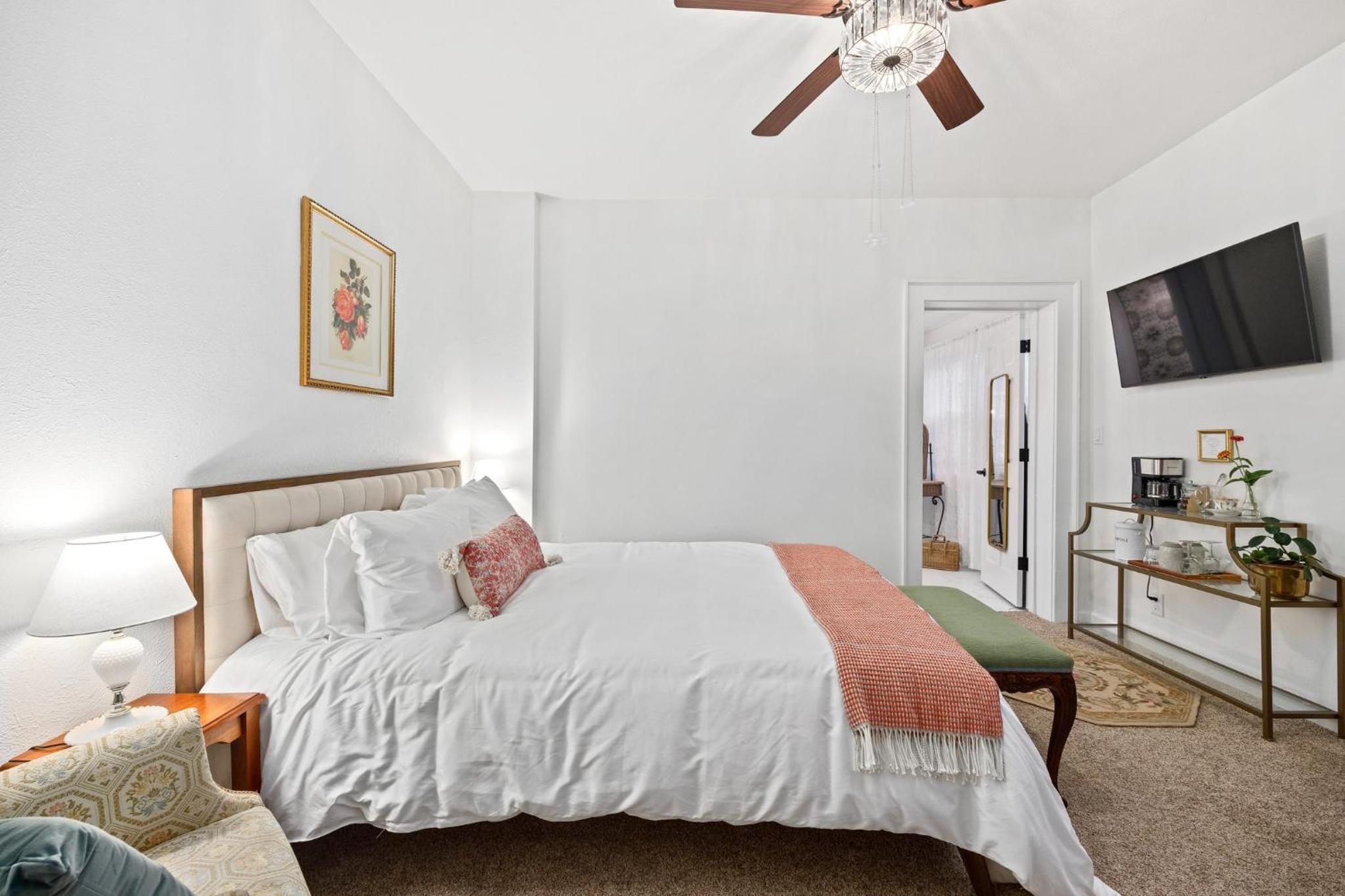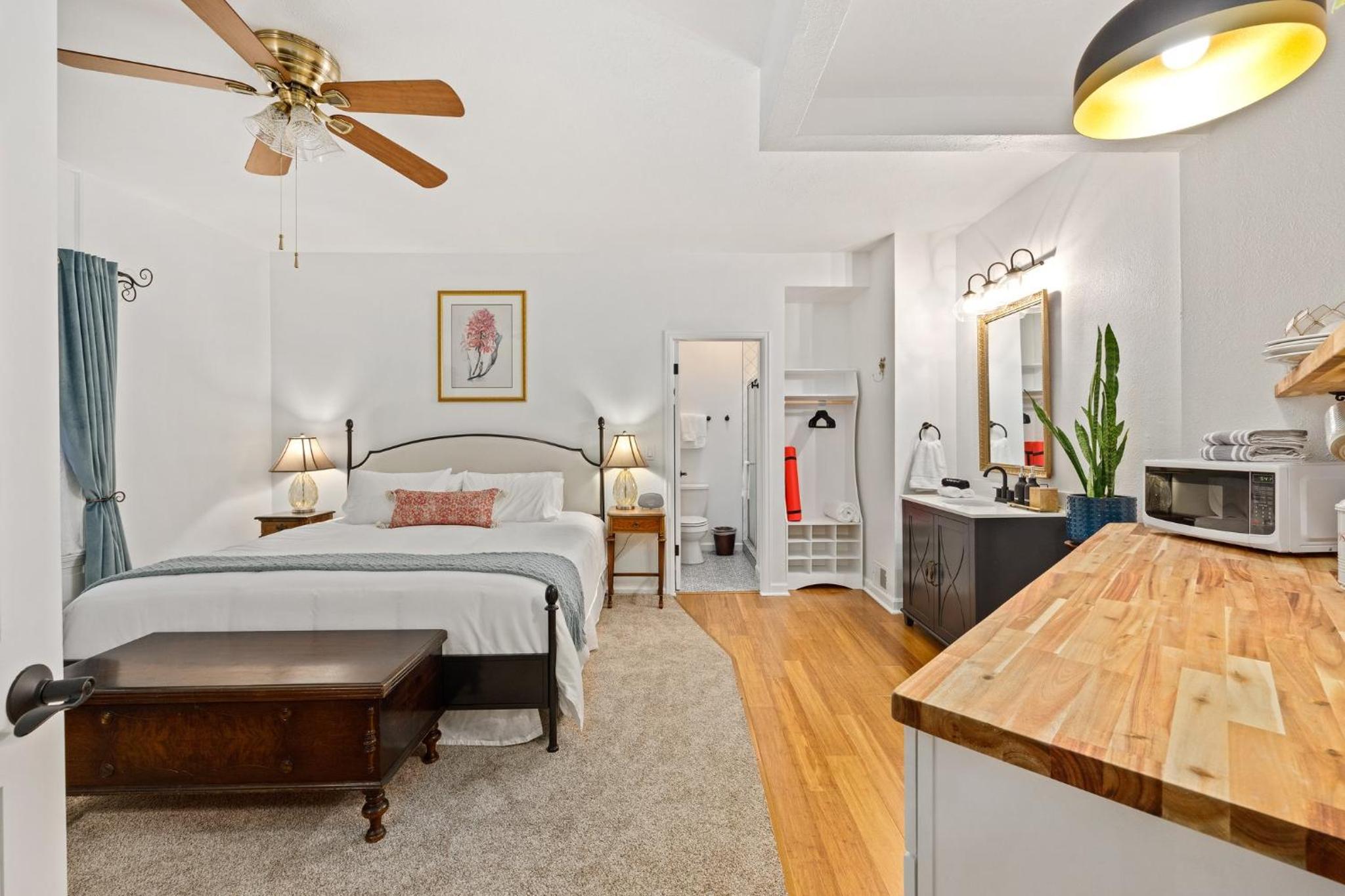 Great property, beautifully restored and decorated. Friendly/helpful staff. Comfortable bed in large room. Lovely continental breakfast, stocked frig in house and room. Travel necessities provided. Perfection. They thought of everything