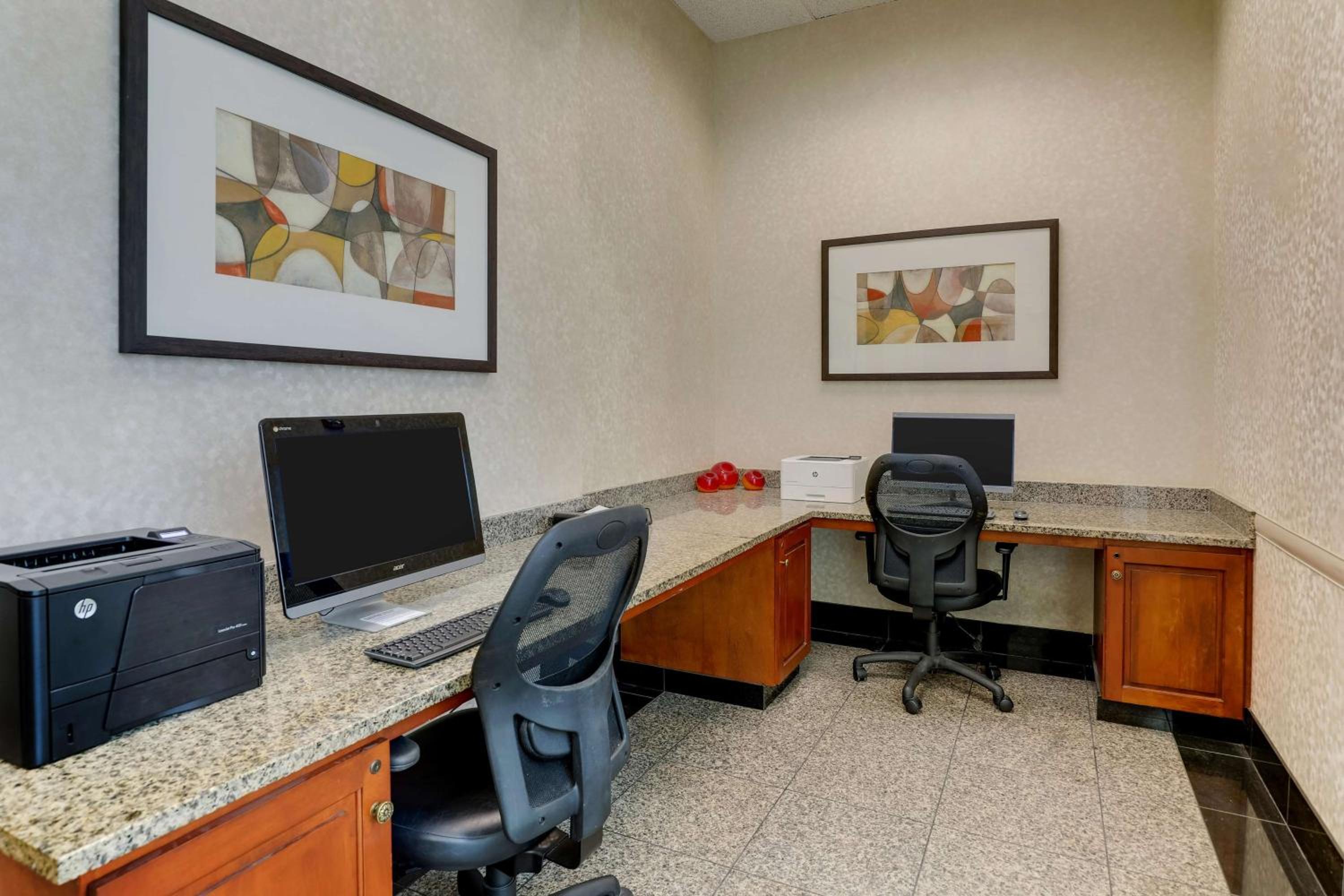 Each room at the hotel is equipped with a microwave, refrigerator, and a flat-screen cable TV, ensuring a cozy and relaxing stay for guests after a day of exploring the city or attending meetings.