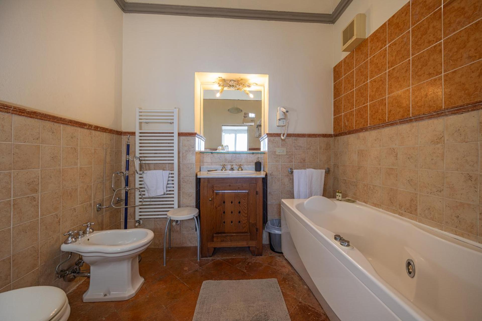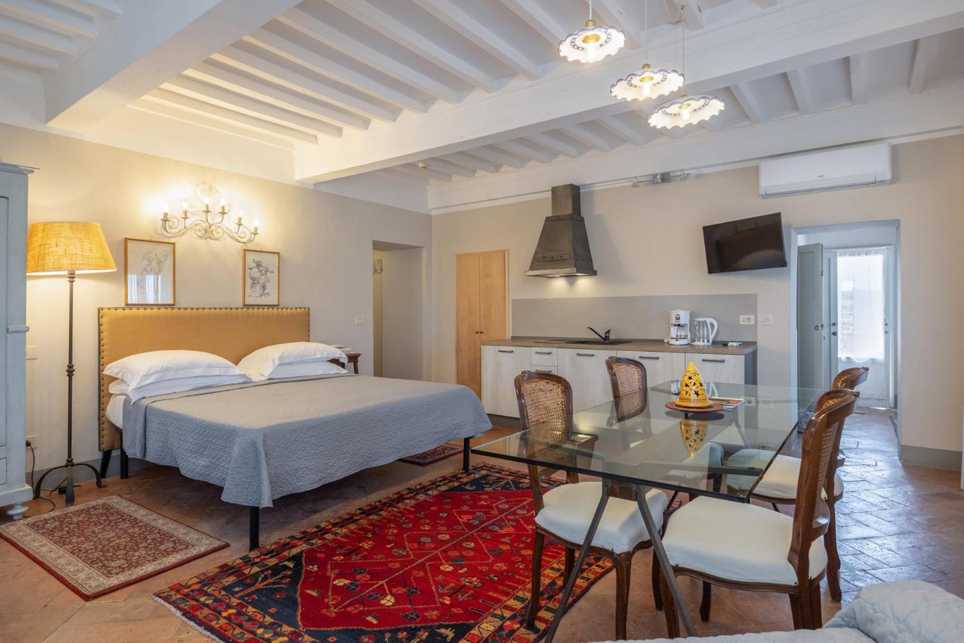 Hotel San Michele, nestled within the historic Baldelli Palace, showcases the architectural splendor of 15th-century Cortona. Each of the 40 rooms is a unique blend of ancient charm and modern comfort, offering stunning views of the valley.