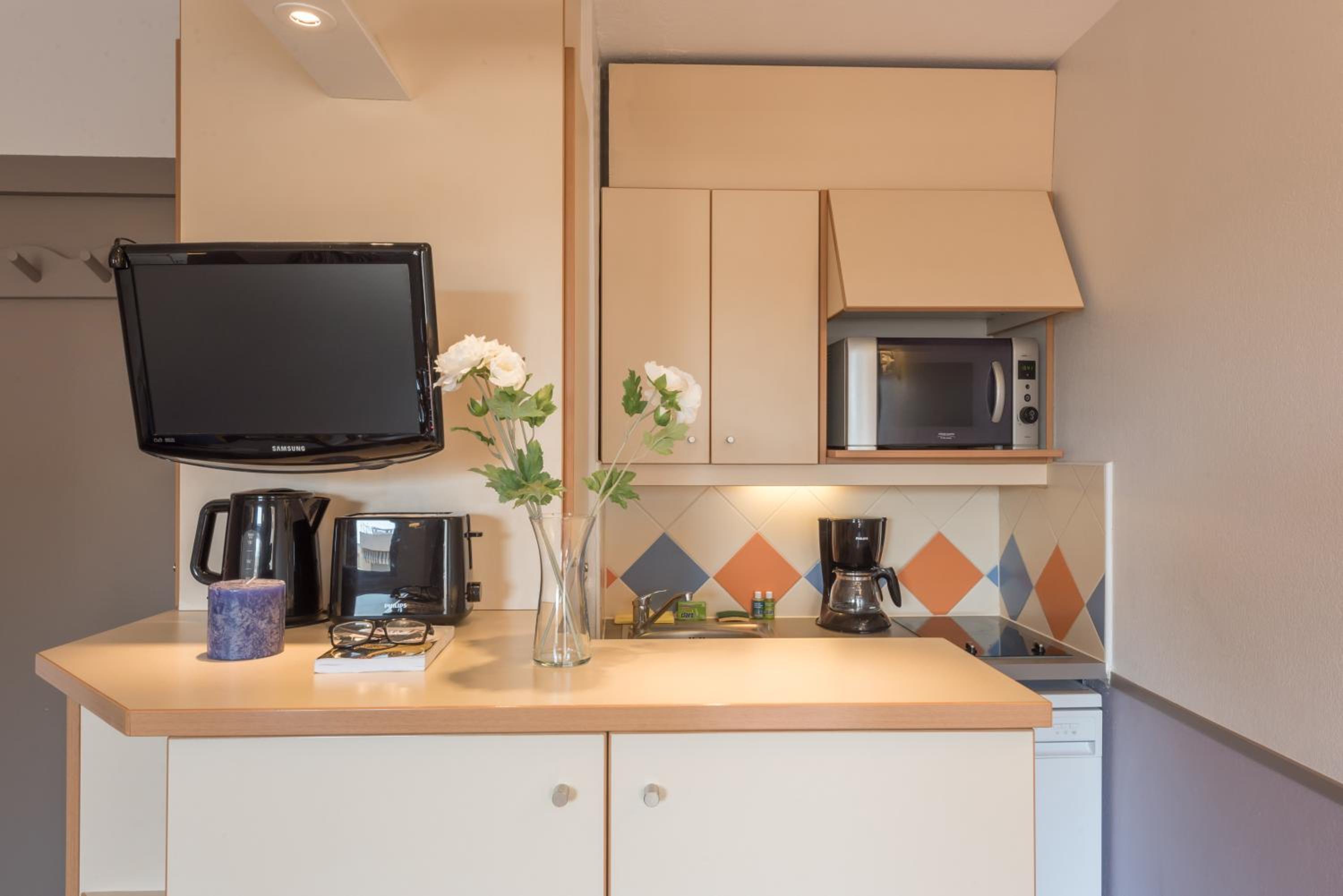 Our studios and apartments, equipped with a kitchen including a dishwasher and induction hobs, provide the ideal space for you to prepare your favorite meals. Enjoy the freedom and flexibility of a self-catered stay, with the option to borrow books and board games for added entertainment.