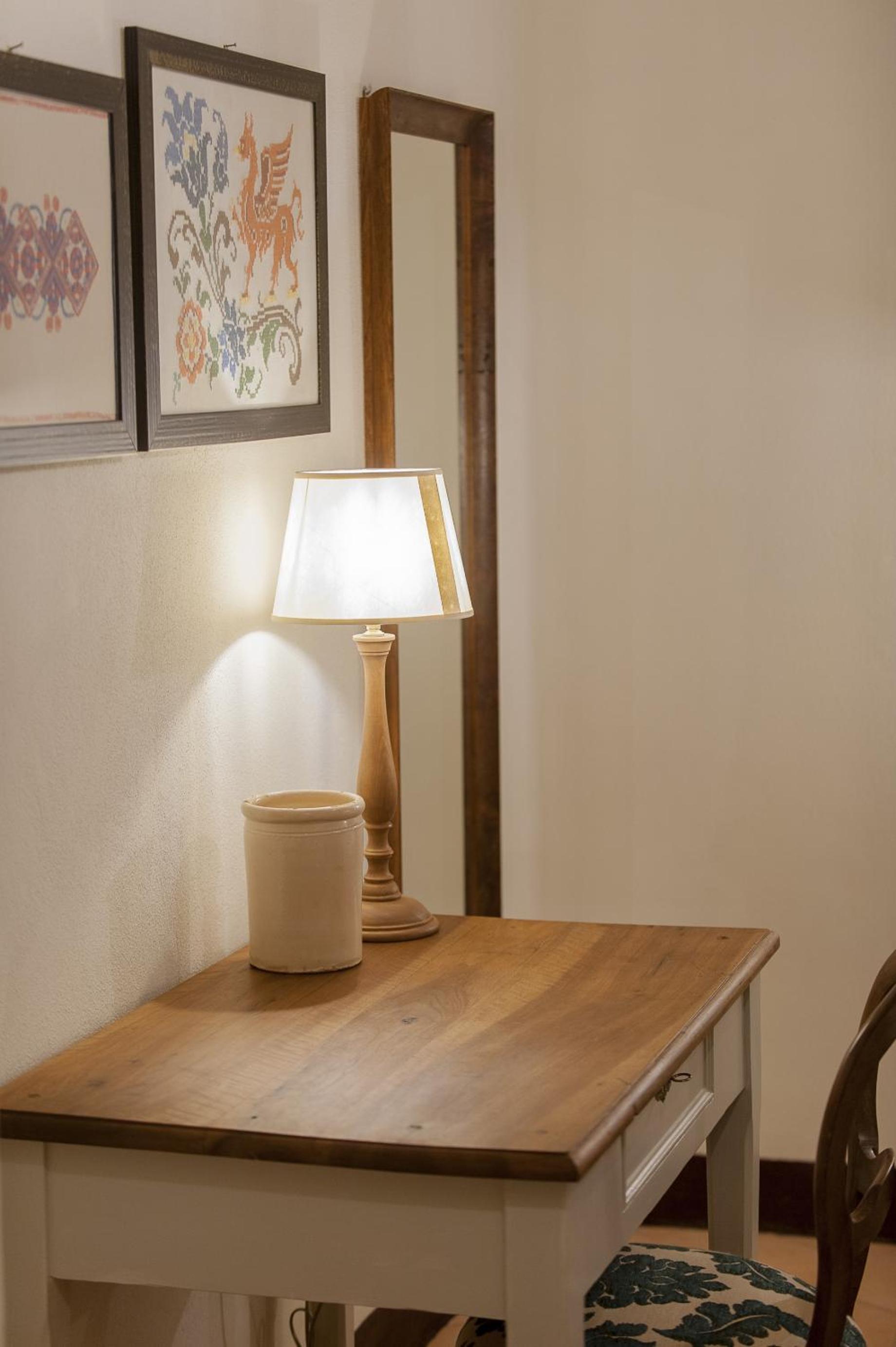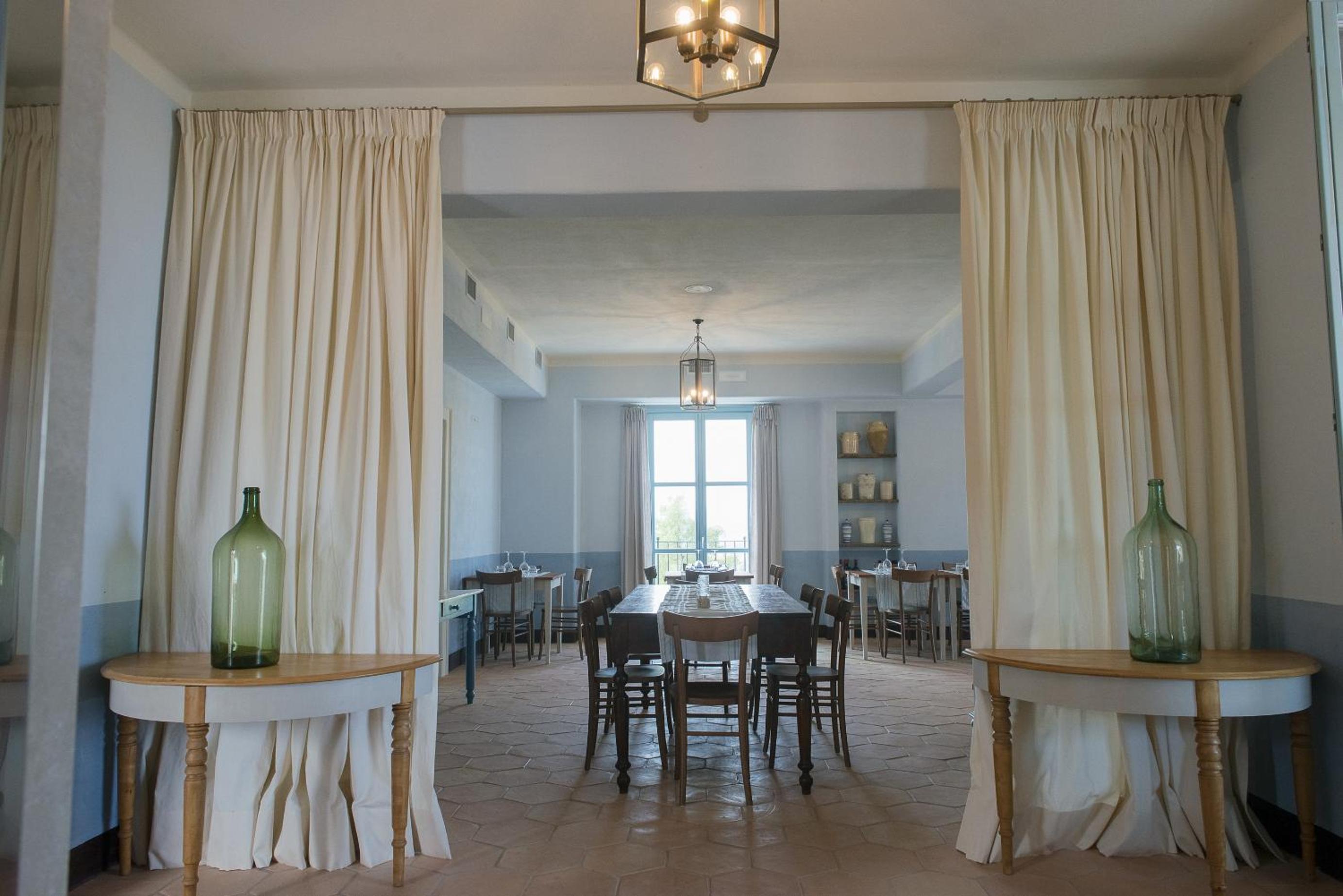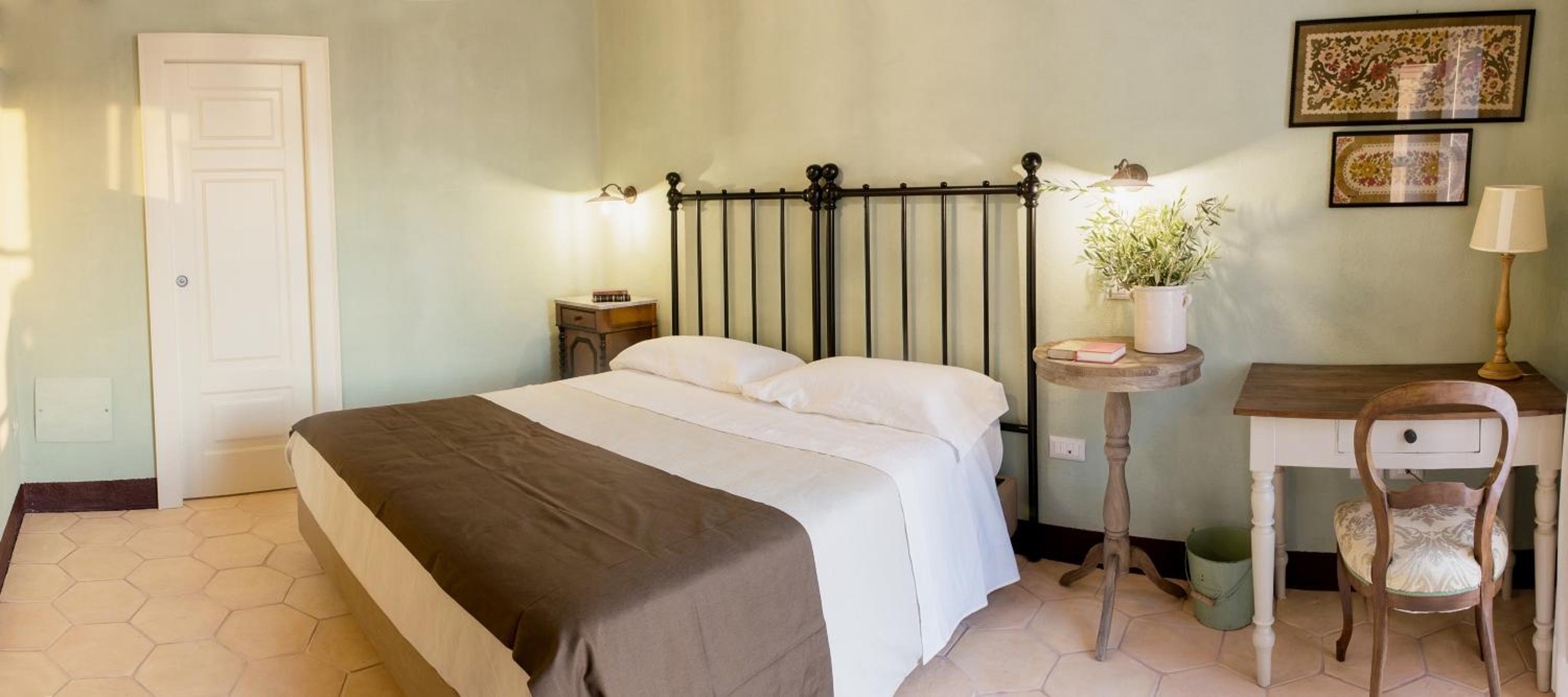 La posizione a mezza collina, tra gli ulivi con la vista sul mare. Il gusto nell’arredamento delle camere, anche molto confortevoli.