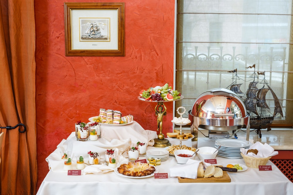 The breakfast choices vary from time to time with hot dishes and salad and some Russian traditional sweet desert.