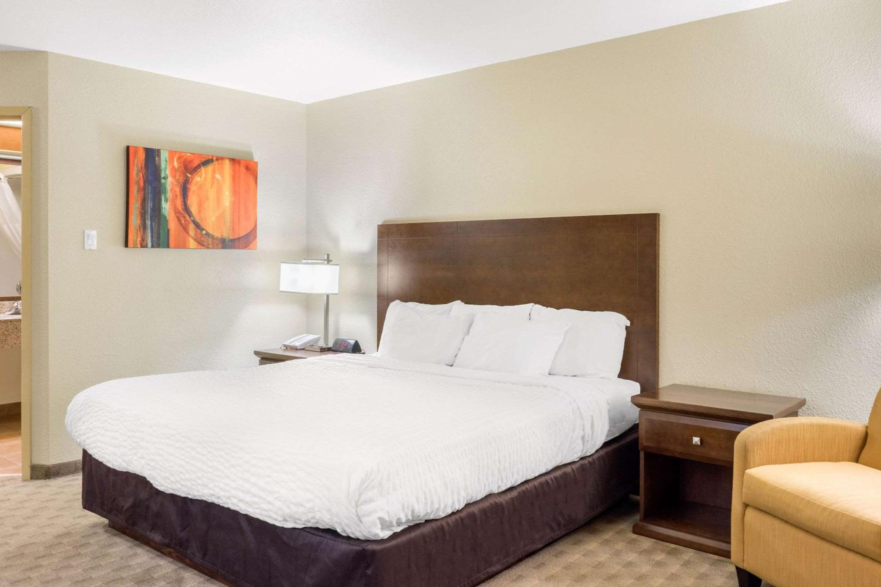Nice soft king sized bed with very clean white sheets. Pool ,hot tub and steam room worked great. Very nice big included breakfast. Beer vendor a bonus as well.