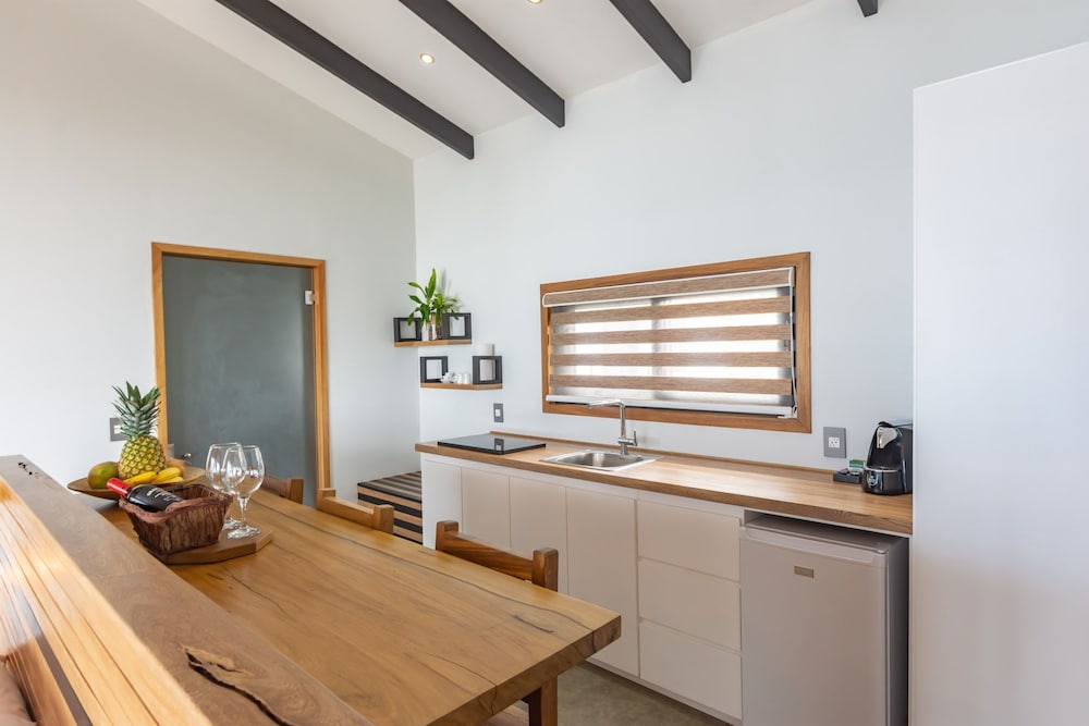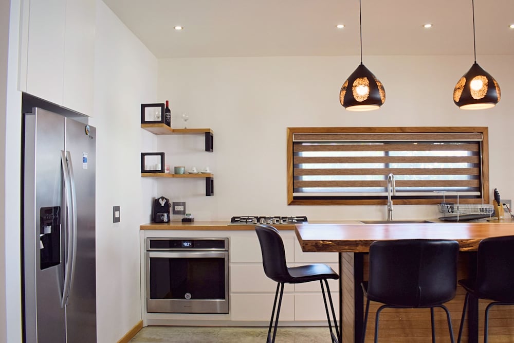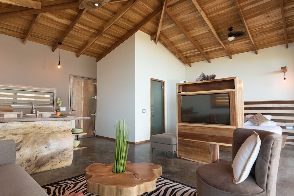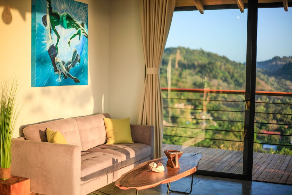 Beautiful spot, high up on the hills above Santa Terresa but we wouldn't come back. Its at the top of the steepest and most difficult hill I've ever driven up. I'm an very experienced driver, used to driving in Mexico, Greece and Costa Rico, but I didn't want to drive up and down those hills particularly at night. It becomes a constant worry when you go into town so you end up being "trapped" in he place. There's also no way of walking to the place. You really do need a 4 wheel drive or ATV to get here. The property is interesting but needs a lot of maintenance, its a few years old and showing signs of wear and tear from the tough environment. You do get to see lots of wildlife being at tree level, we had a pool which was "watering hole" for the local Racoon and Coatimundi population, which was great. One thing that does need to be changed is the stocking of the refrigerator. If a place has a full kitchen in the unit which ours did, it shouldn't be filled with "stuff" you are trying to sell to your guests ! For the $800 per night cost it would be nice to provide free bottled water everyday. I know there's a filtration system for the tap water but guests don't know how well that's maintained, not worth the risk. We did enjoy seeing the place and the wildlife, it just needs some work to justify the cost.
