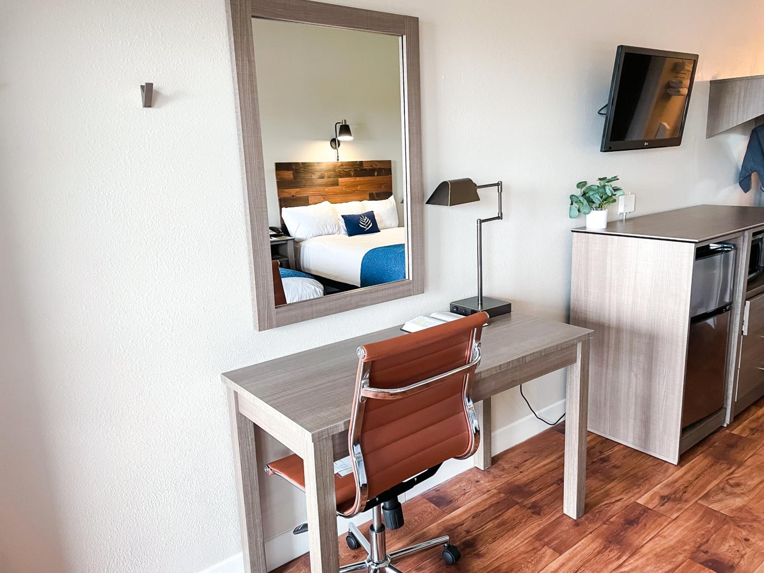 Perfect for our needs - traveling with our dog. The entrance to our room was easily accessible - no walking through a lobby was so nice. Very clean room. Staff was super friendly and accommodating. The flat breads were delicious.