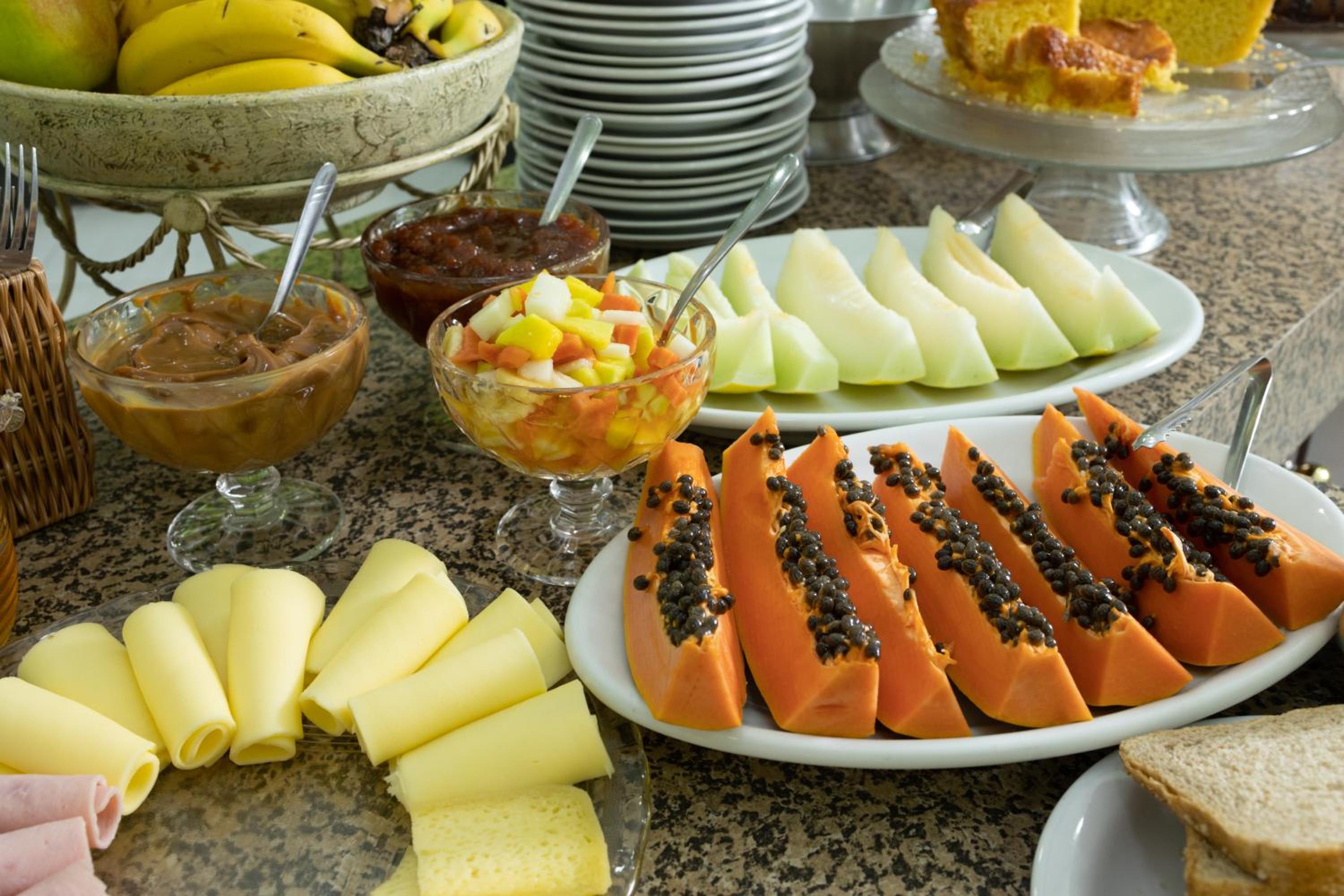 O café da manhã é razoável. Mas acho que pode melhorar a qualidade dos bolos.