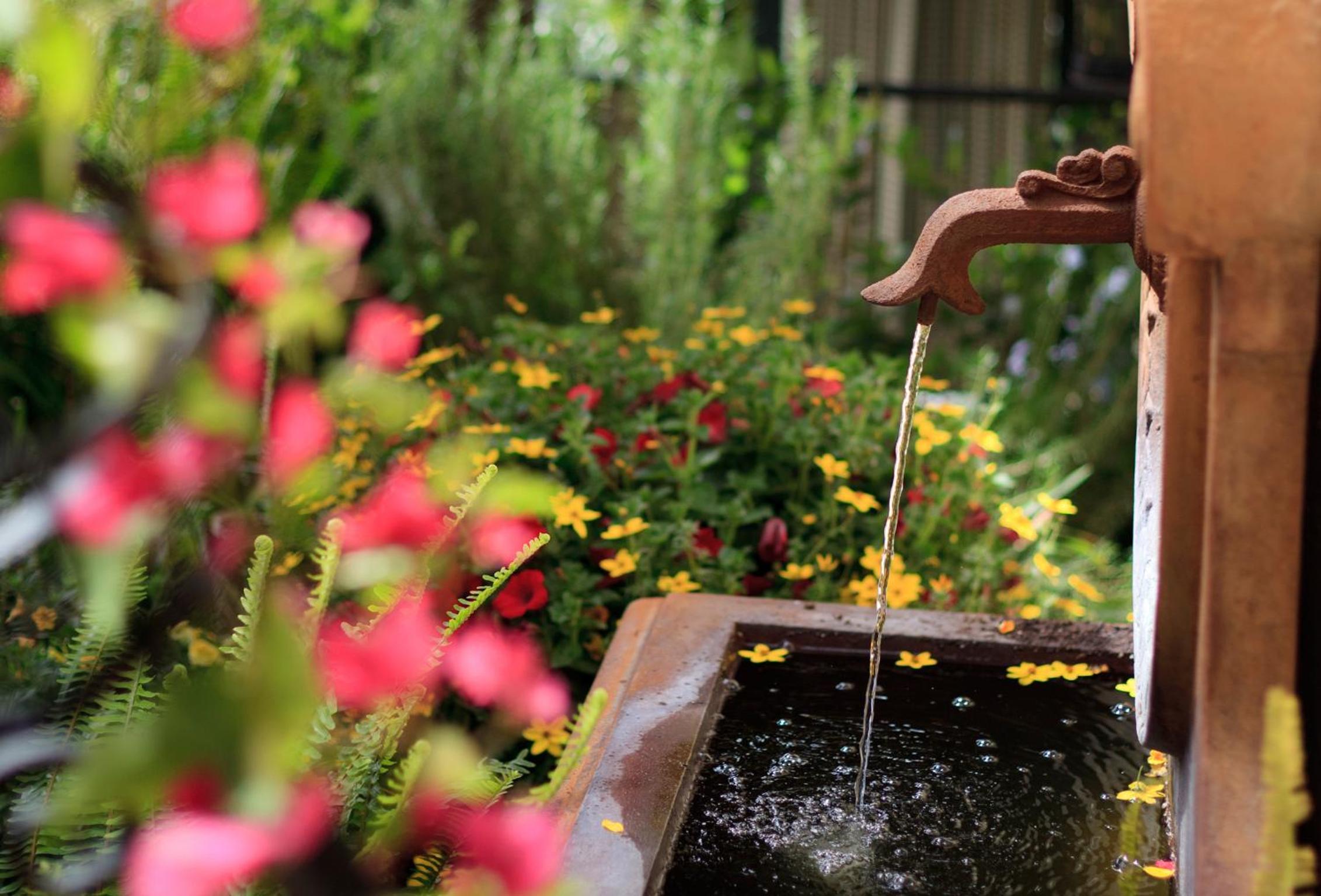 The landscaping is charming
