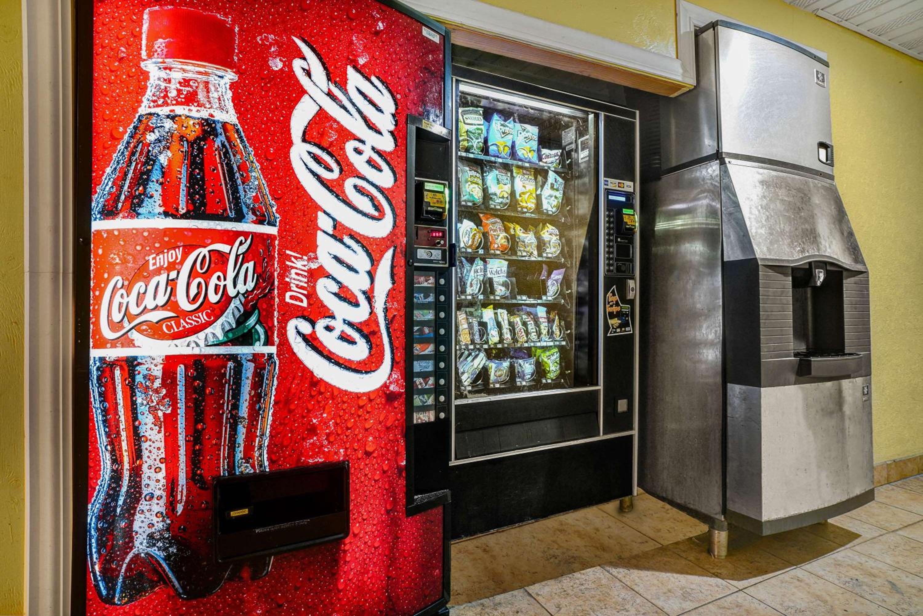 The area was sketchy, kind of industrial. The one vending machine was outrageously priced. Nearest place to eat was more than a half mile walk along a frontage road. Nearest convenience store was a mile walk.