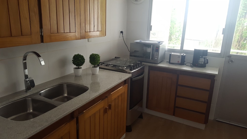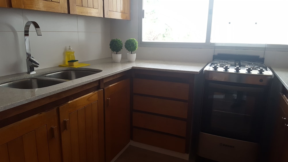 Mejoraría la cantidad y calidad de implementos de cocina disponibles en la kitchenette (vajilla, cubiertos) y agregaría algunos que no están y que son de muy bajo costo. Para estadías de mas de 3 días es imprescindible contar con algún servicio de lavado y secado de ropa de bajo costo para el cliente, que sea sencillo y ágil; para poder disfrutar mejor de la estadía.