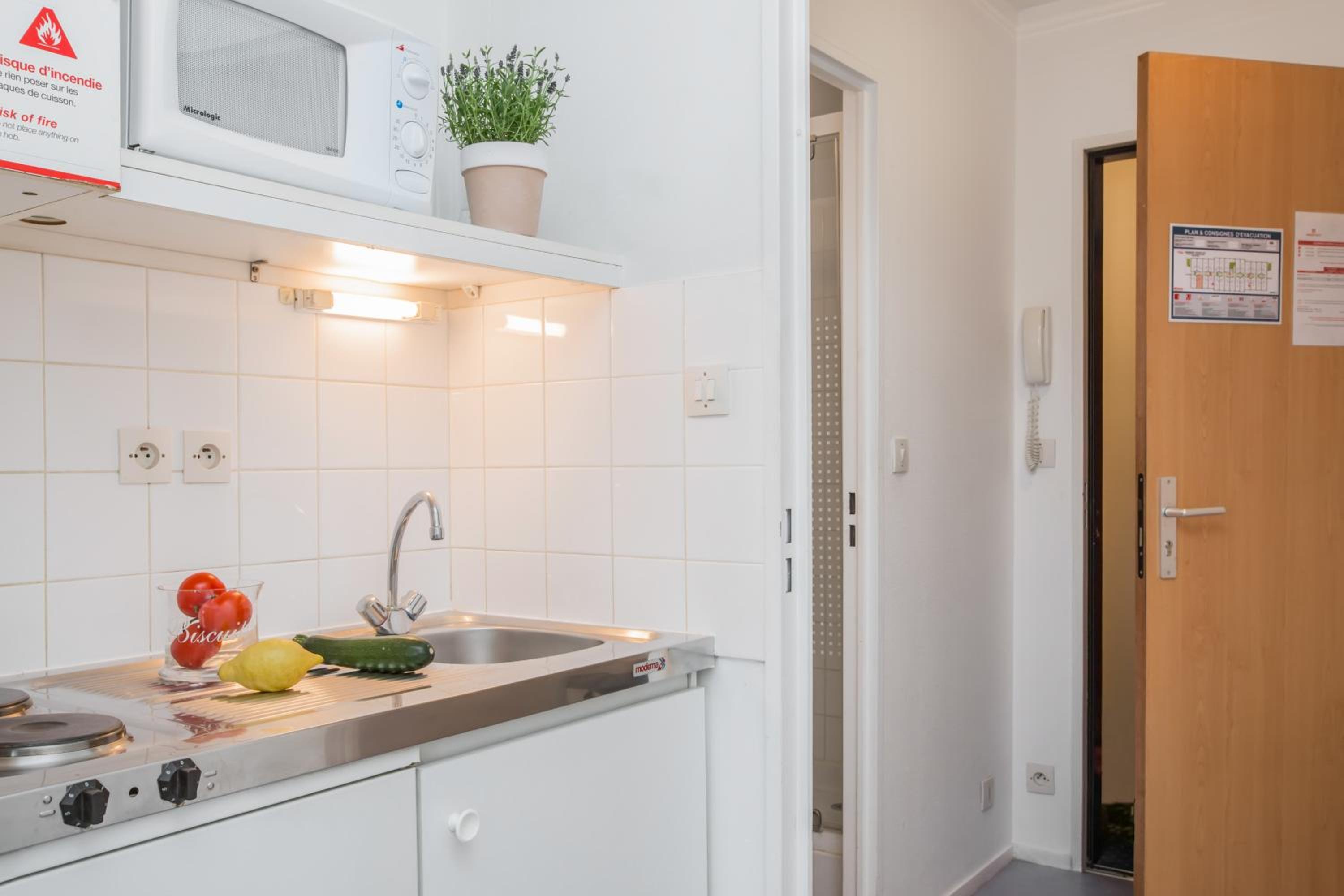 appartement avec cuisine équipée, frigo et micro onde