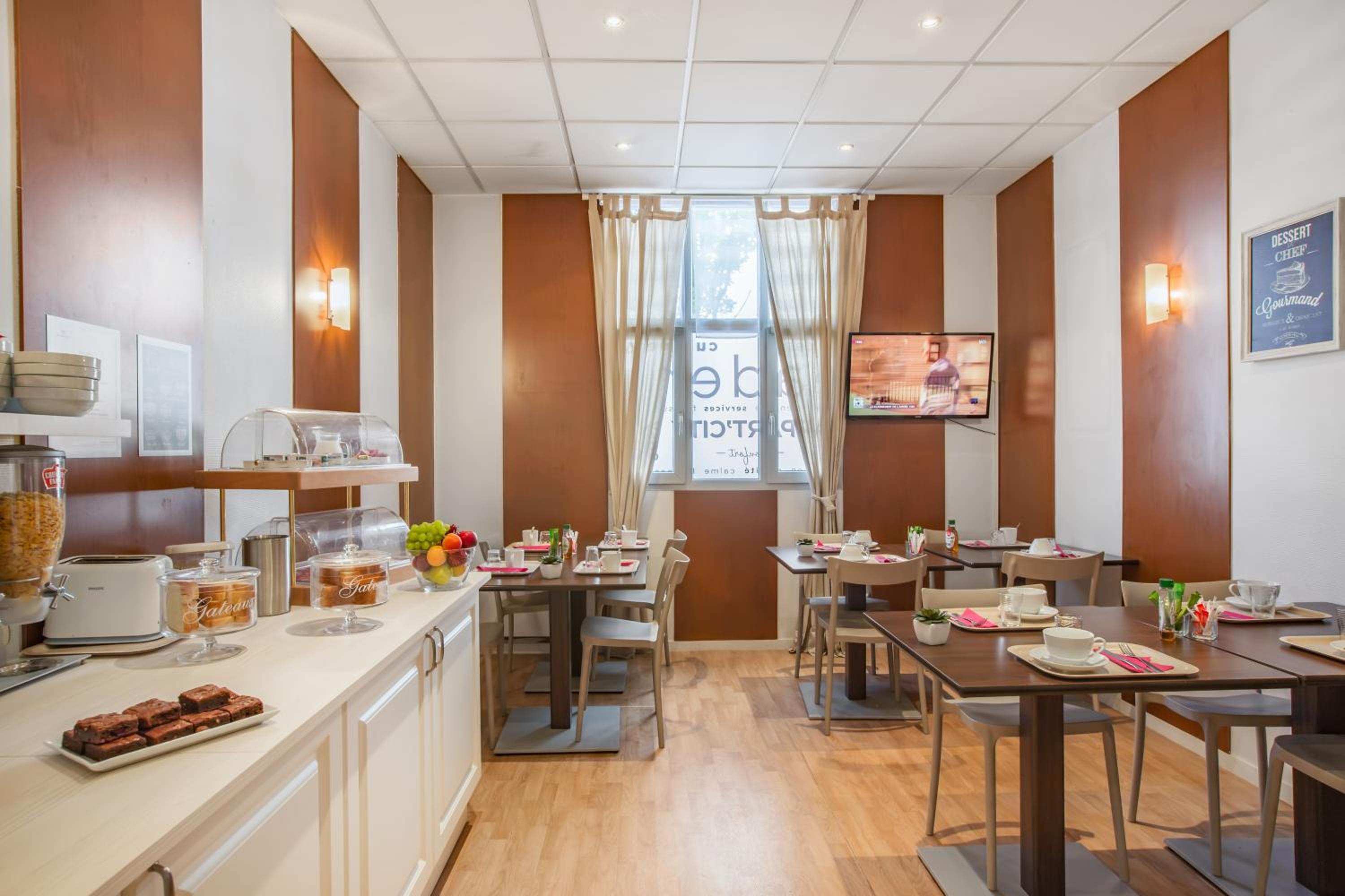Start your day with a delicious breakfast at Appart'City Classic Blois, featuring a variety of breads, pastries, fresh fruits, cheeses, and yogurts. Indulge in a selection of hot and cold beverages to kickstart your morning in the best way.