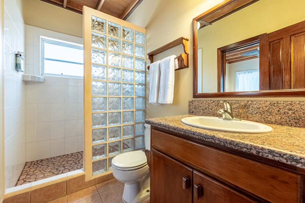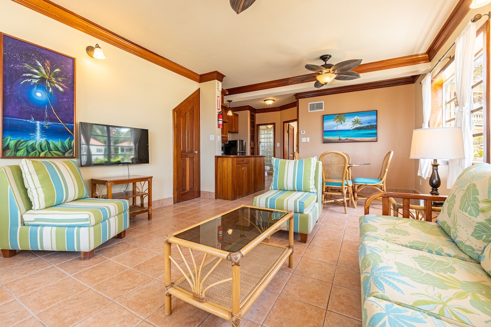 Our family stayed in the upper level pool view unit. The air conditioning never went below 76 so it was quite warm and the air didn’t work in the main bedroom. Other than that the unit had everything we needed. The pool was nice and the bartenders were friendly. The beach smelled from all the sargassum so we didn’t go there. The mosquitos were so bad in the mornings and night we only left during those times if absolutely necessary. If I needed to leave to go to the office for example I would put on pants and a hoodie and run, otherwise you would have at least 20 mosquito bites. I liked the small coffee shop across the street and the convenience shop. The pharmacy came in handy too. I felt the golf cart prices were very reasonable. We did the snorkel/fishing/bbq tour here. I thought it would be to shark ray alley but it wasn’t. We still had fun and saw a manatee, sharks and caught and ate barracuda, lobster and crab. It was my family’s favorite part of staying here. Secret beach was close by golf cart. I don’t think I’d stay here again due to the air conditioning not working as expected, not having a restaurant on site and only one bathroom in the unit.