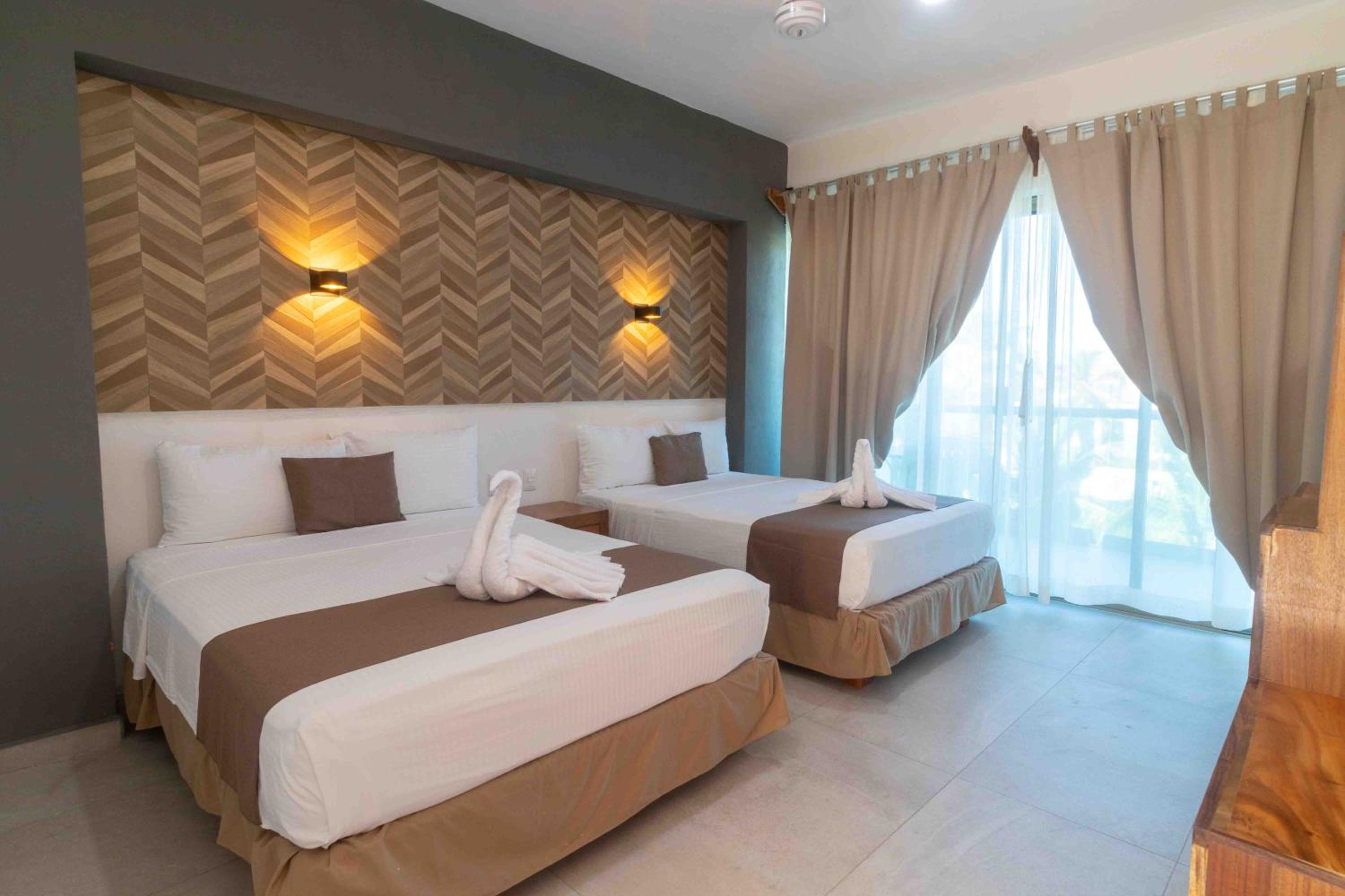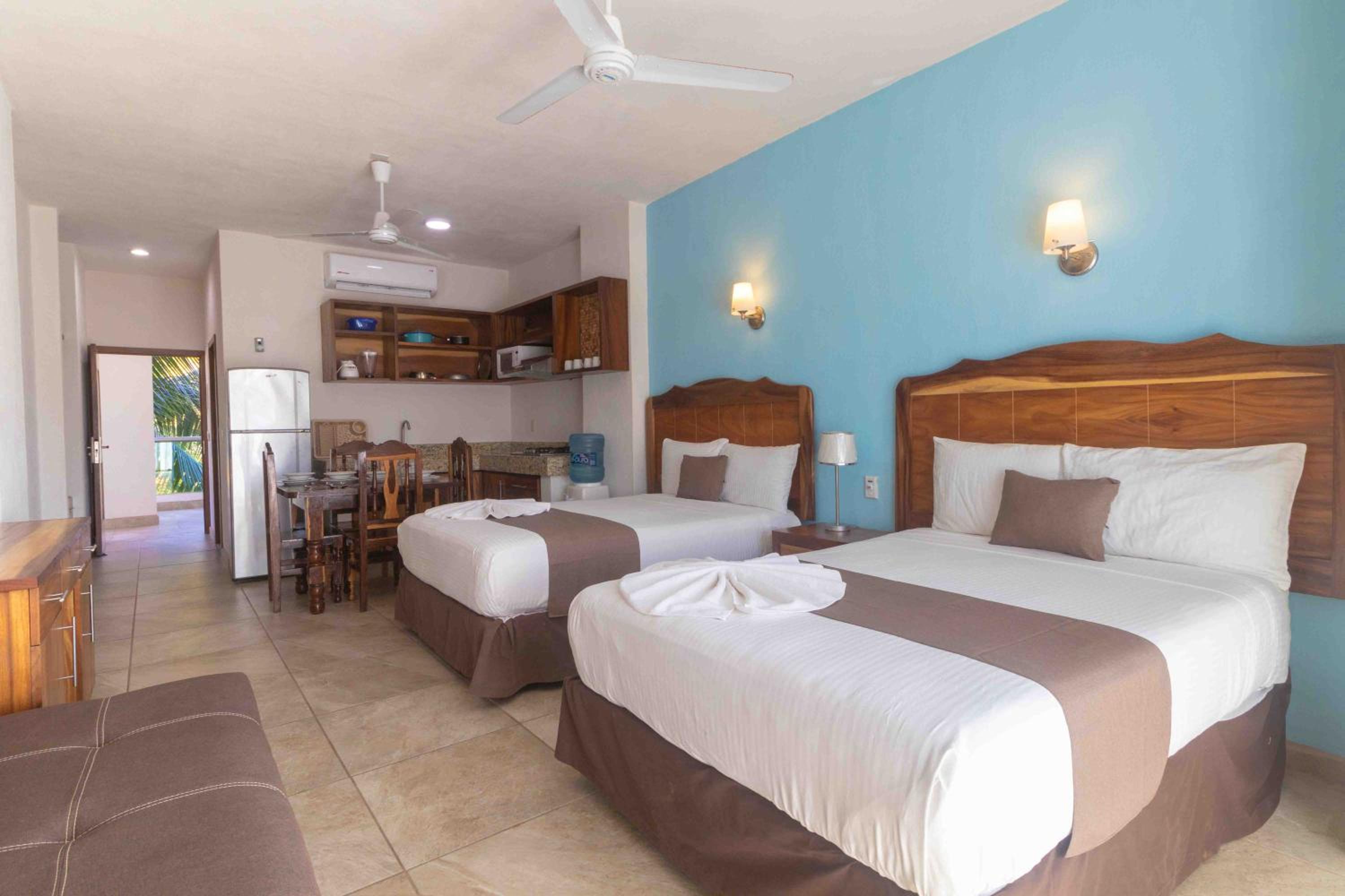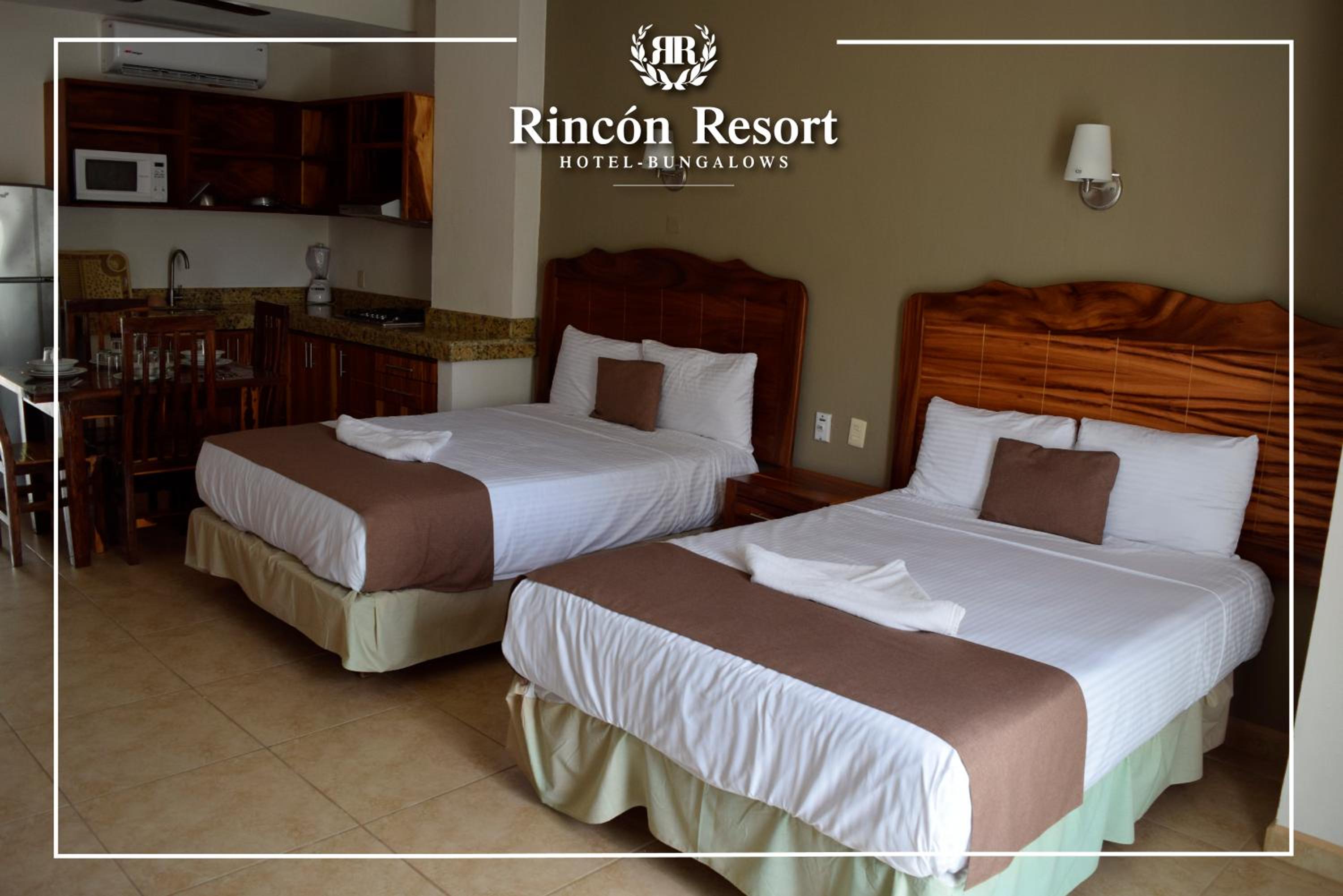 Rincon Resort, nestled in Los Ayala, Nayarit, offers exquisite rooms with modern amenities like air conditioning, flat-screen TVs, and private terraces overlooking the sparkling pool.
