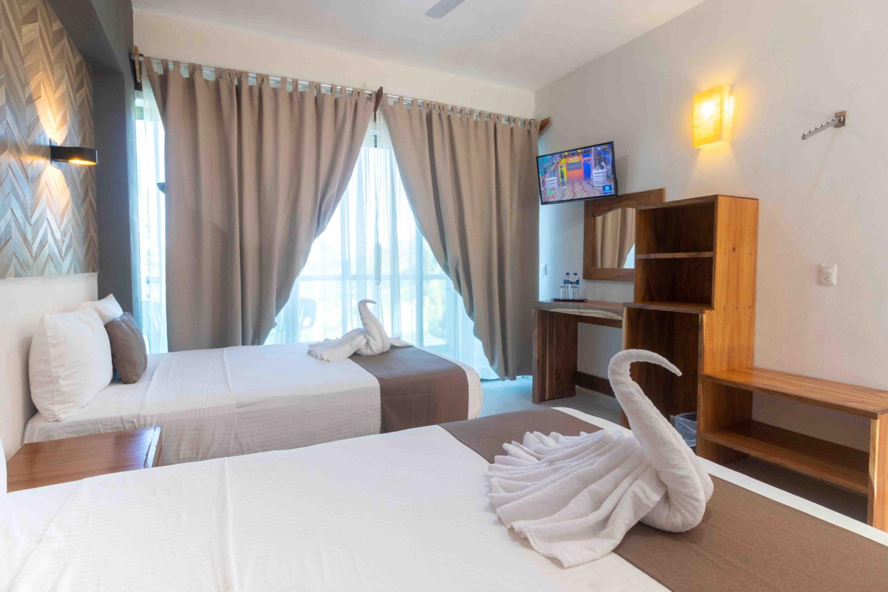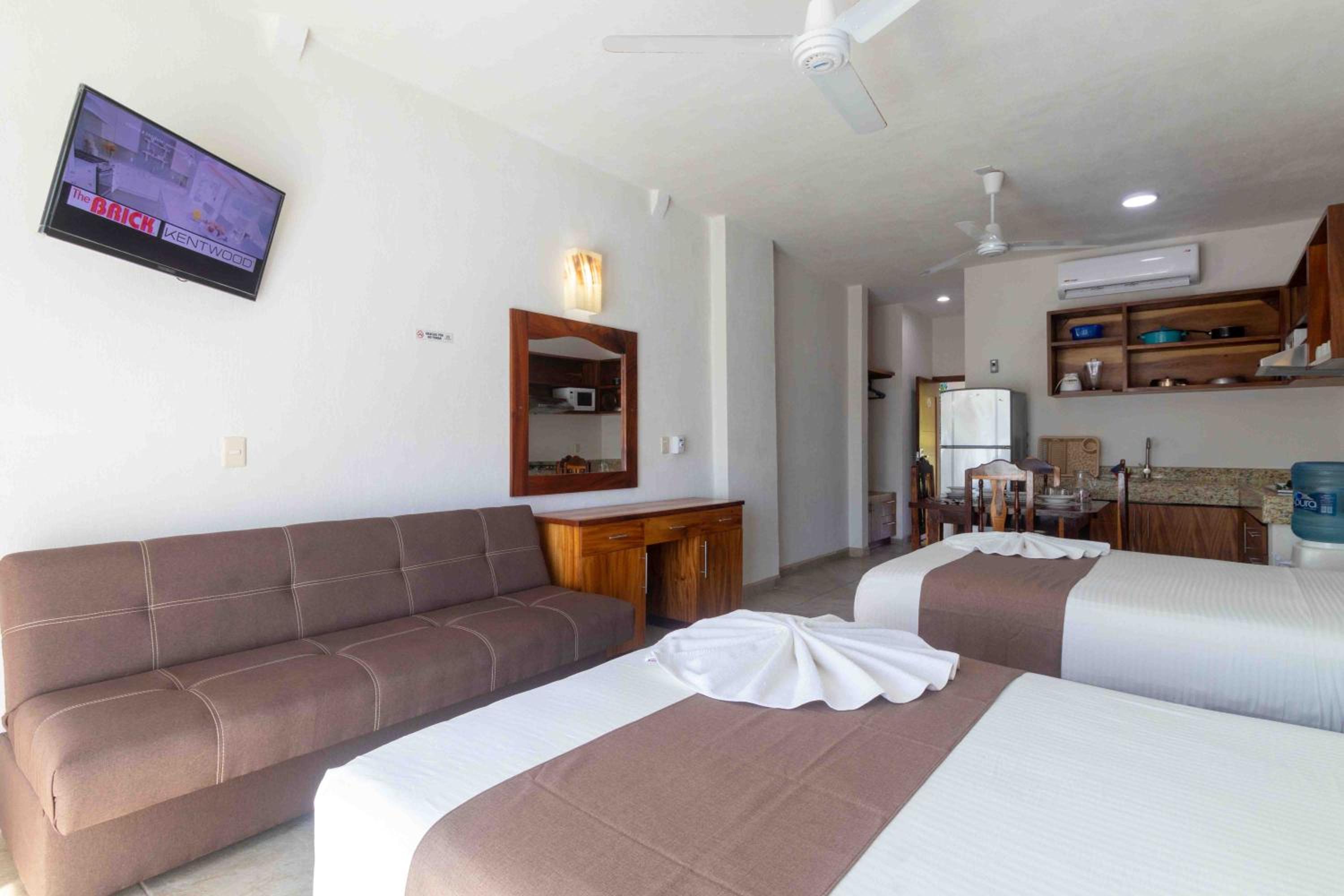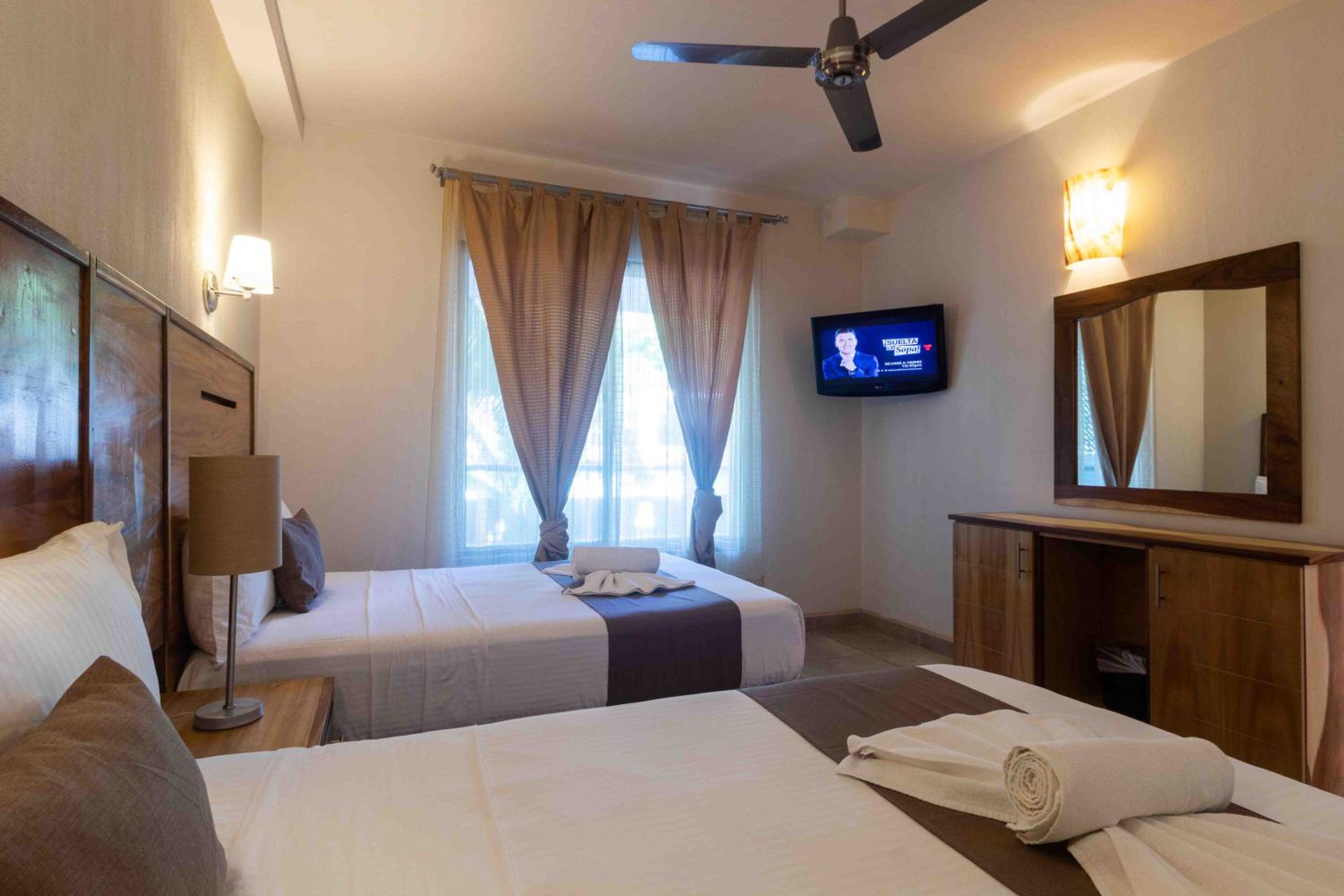 Rincon Resort, nestled in Los Ayala, Nayarit, offers exquisite rooms with modern amenities like air conditioning, flat-screen TVs, and private terraces overlooking the sparkling pool.