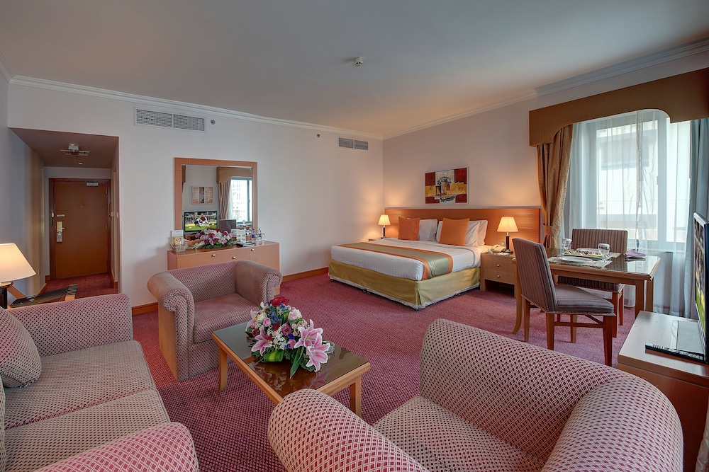 Centrally situated in Dubai, the hotel offers easy access to popular attractions like Dubai Creek and Deira Clocktower. Plus, enjoy complimentary Wi-Fi, airport shuttle service, and more during your stay.