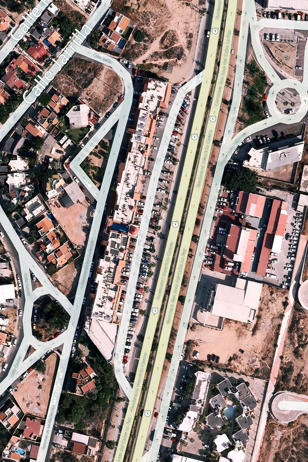 The busy road out front