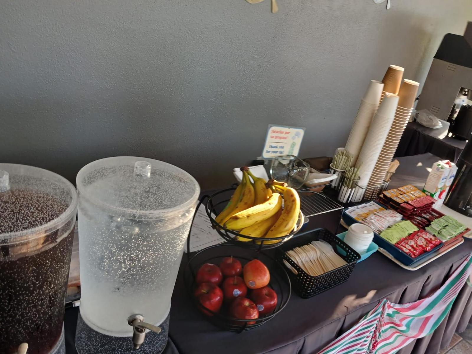 Nice staff. Some fresh fruit daily, decent coffee.