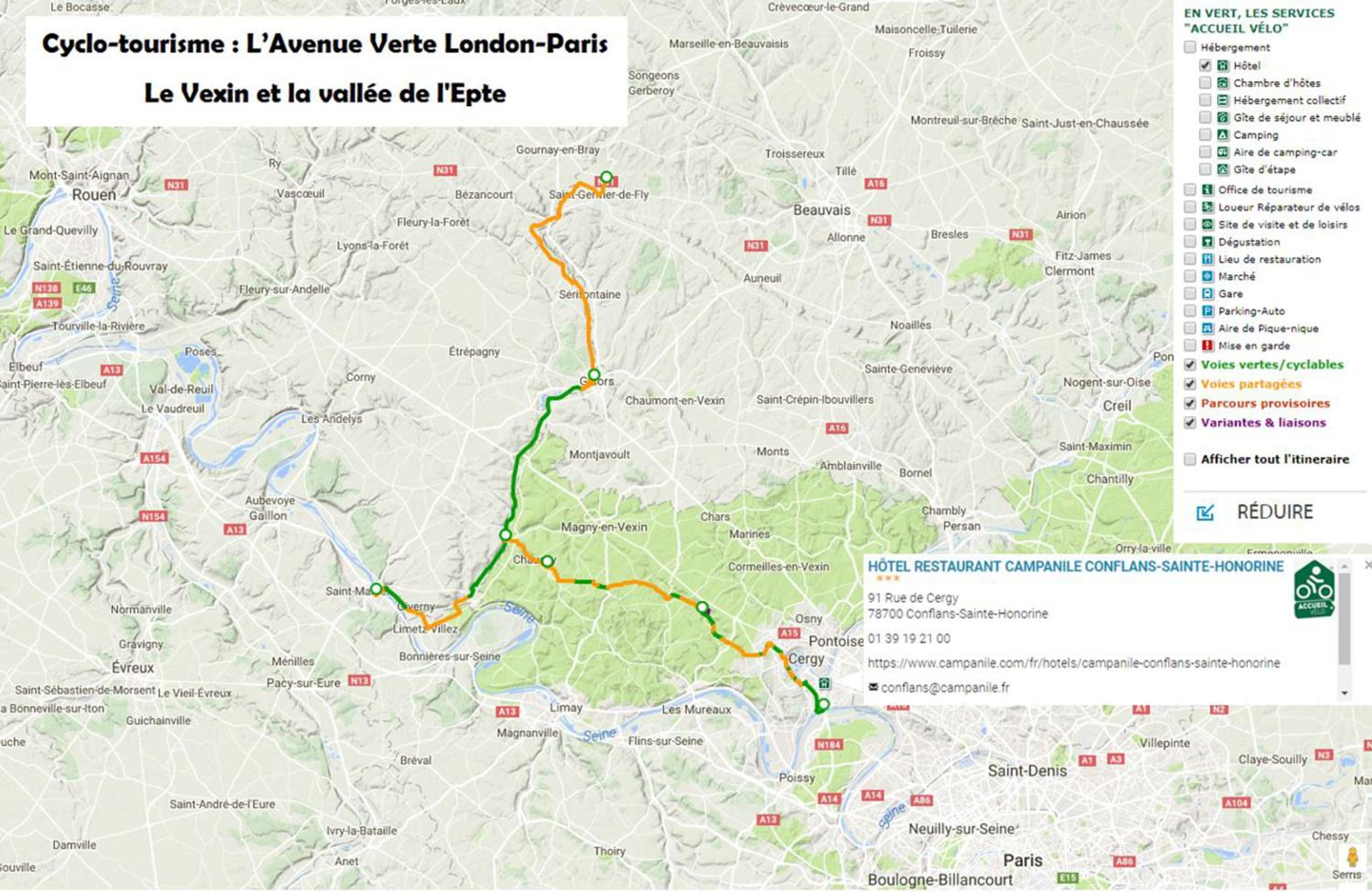 The hotel restaurant Campanile de Conflans St Honorine is ideally situated between Paris, Cergy, and Poissy, making it a convenient choice for travelers. With easy access to the London-Paris Avenue Verte cycle path and proximity to key businesses and attractions, guests can explore the area effortlessly.