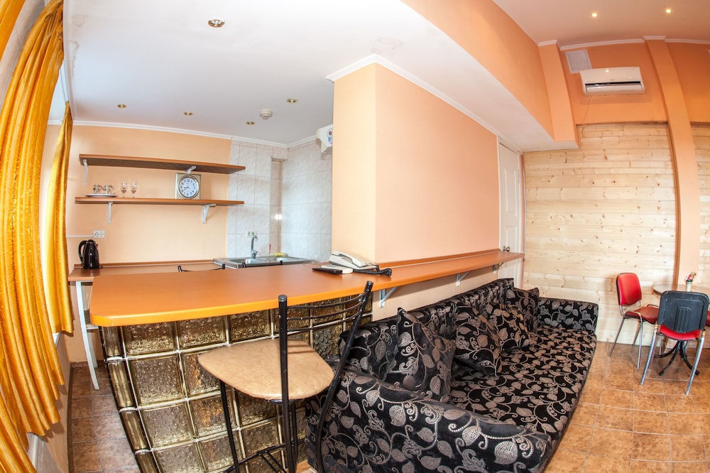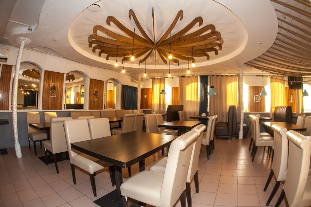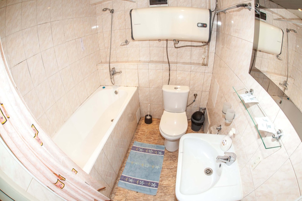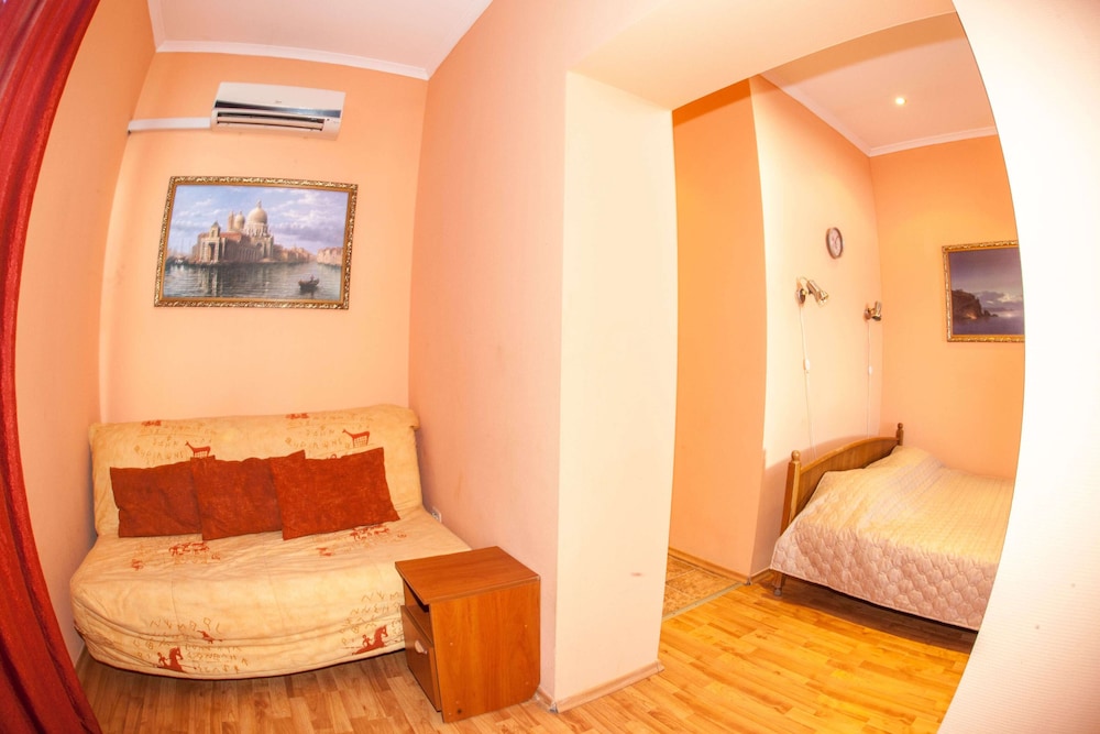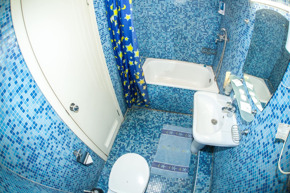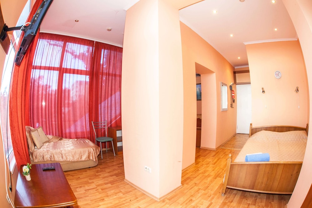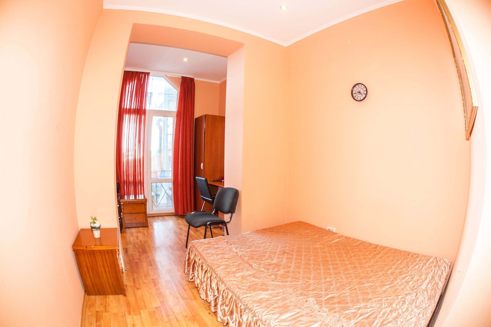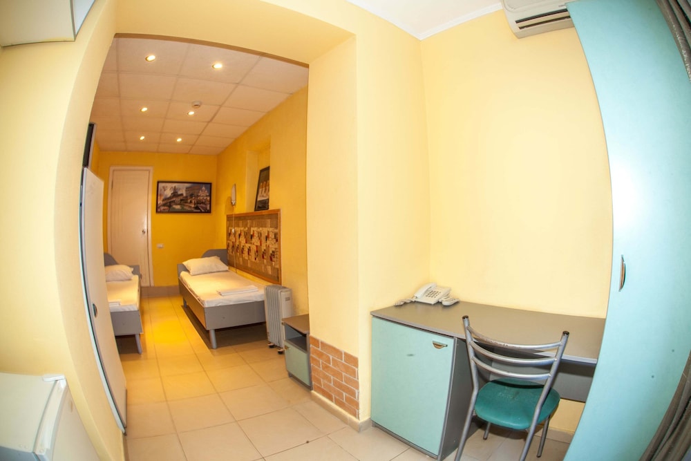 Бюджетный отель в 50 метрах от Черного моря. В отеле два этажа, на первом этаже двери на улицу, на втором этаже - в коридор. Номера небольшие, но внутри есть все: холодильник, обогреватель, чайник, плоский телевизор, кое-какая мебель. Есть душевая кабина и водонагреватель. Все, конечно, далеко не новое, но работает исправно. Если заказали завтрак - то он в небольшом кафе наверху, в целом, готовят вполне, но рекомендую заказывать кашу, так как яйца жарят в каком-то масле, получается очень жирно. Еще выдают только несколько пакетиков шампуня и жидкого мыла при заселении, потом надо просить. Так что советую взять с собой сюда кусочек мыла для рук/тела и шампунь. Персонал очень приветливый и дружелюбный, во всем помогут. Также они продают экскурсии, советую. И еще. По вечерам громкая музыка из кафе, если вы не можете под нее уснуть, лучше выберите другое место. Я, правда, легко и быстро засыпал, так как много ходил. Кстати, до вокзала всего полчаса пешком.