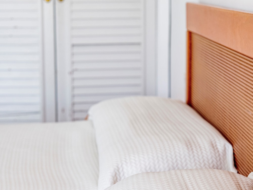 Good location. We had 2 bed apartment, which needs some maintenance. Ground floor apartment and the access to the pool is in need of repair. The gate has been broken and the metal pieces have just been left sticking out, very dangerous if you were staying with children. The beds were very comfy, I’d say we were lucky enough to have new mattresses. The sheets and towels were also clean and in good condition, however overall the apartment needs a refurb. The internal doors are in bits and the patio door nearly doesn’t open. Nice pool. Food available at pool bar all day. Overall our stay was fine as it was only 3 days but if you have high expectations don’t stay here. It’s very dated and in need of upgrade.