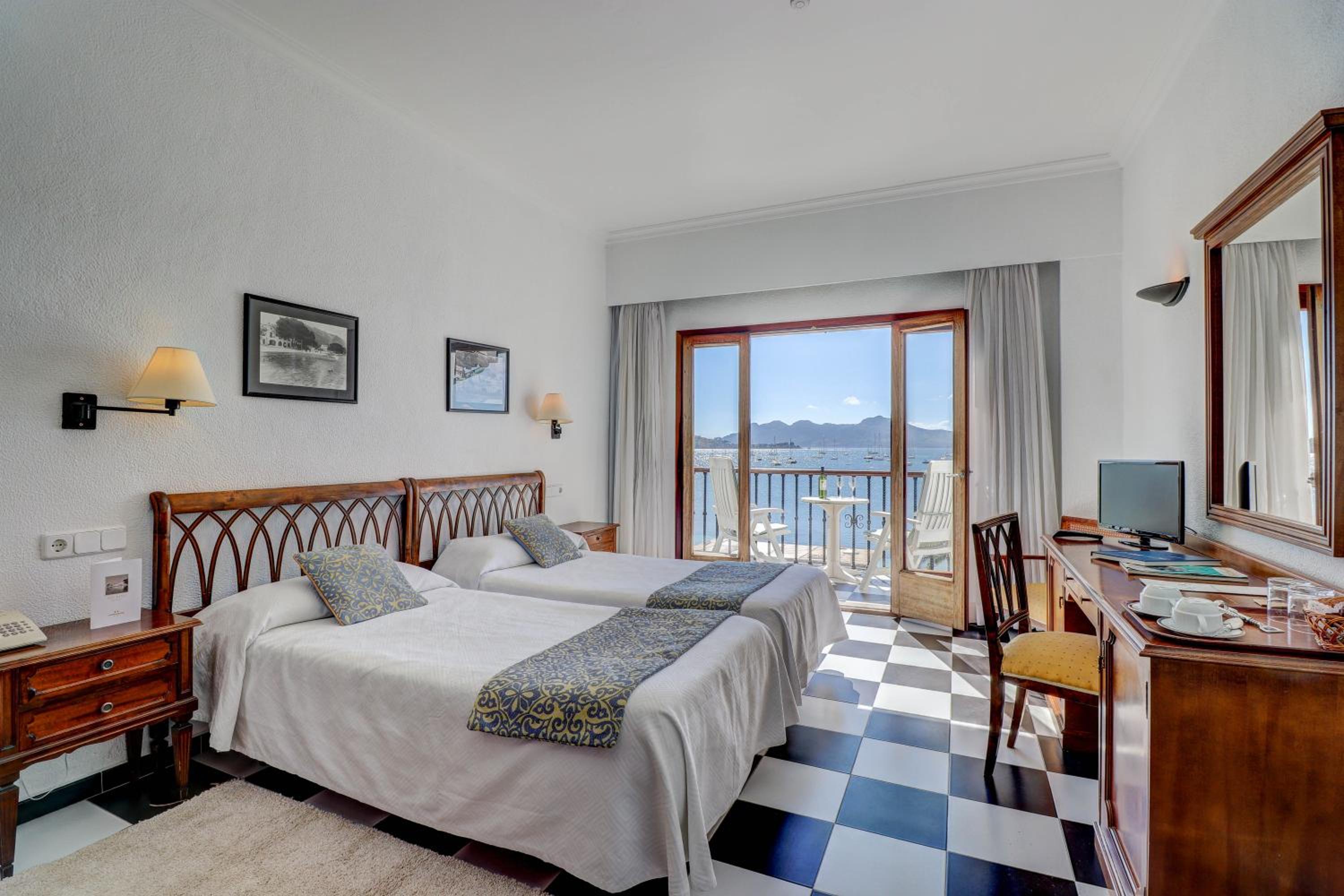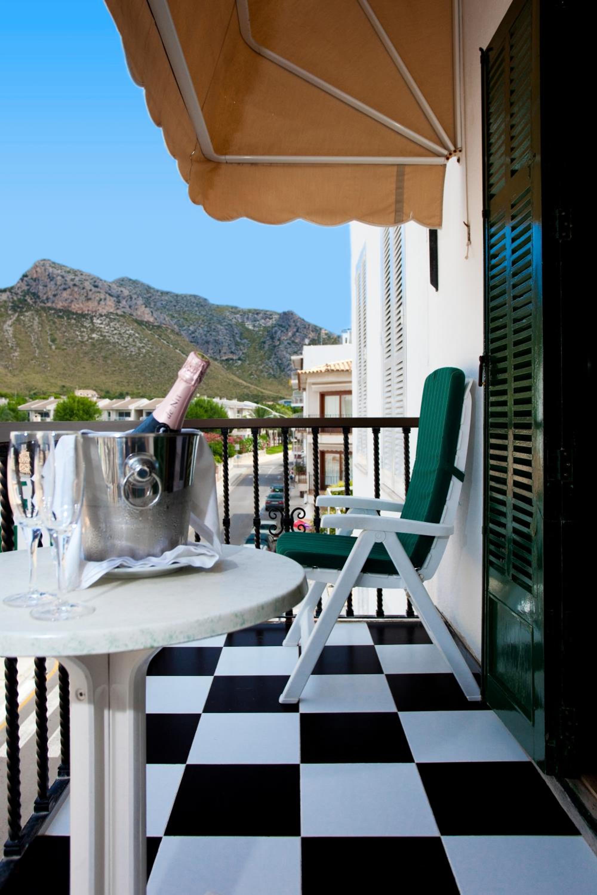 la ubicación maravillosa, en plena bahía del Puerto de Pollença y en primera línea. El hotel es antiguo renovado, tiene un encanto "british" que hace gracia. Habitación y baño correctos. La terraza, enorme, la comparte con un Capuccino, y eso es un must.
