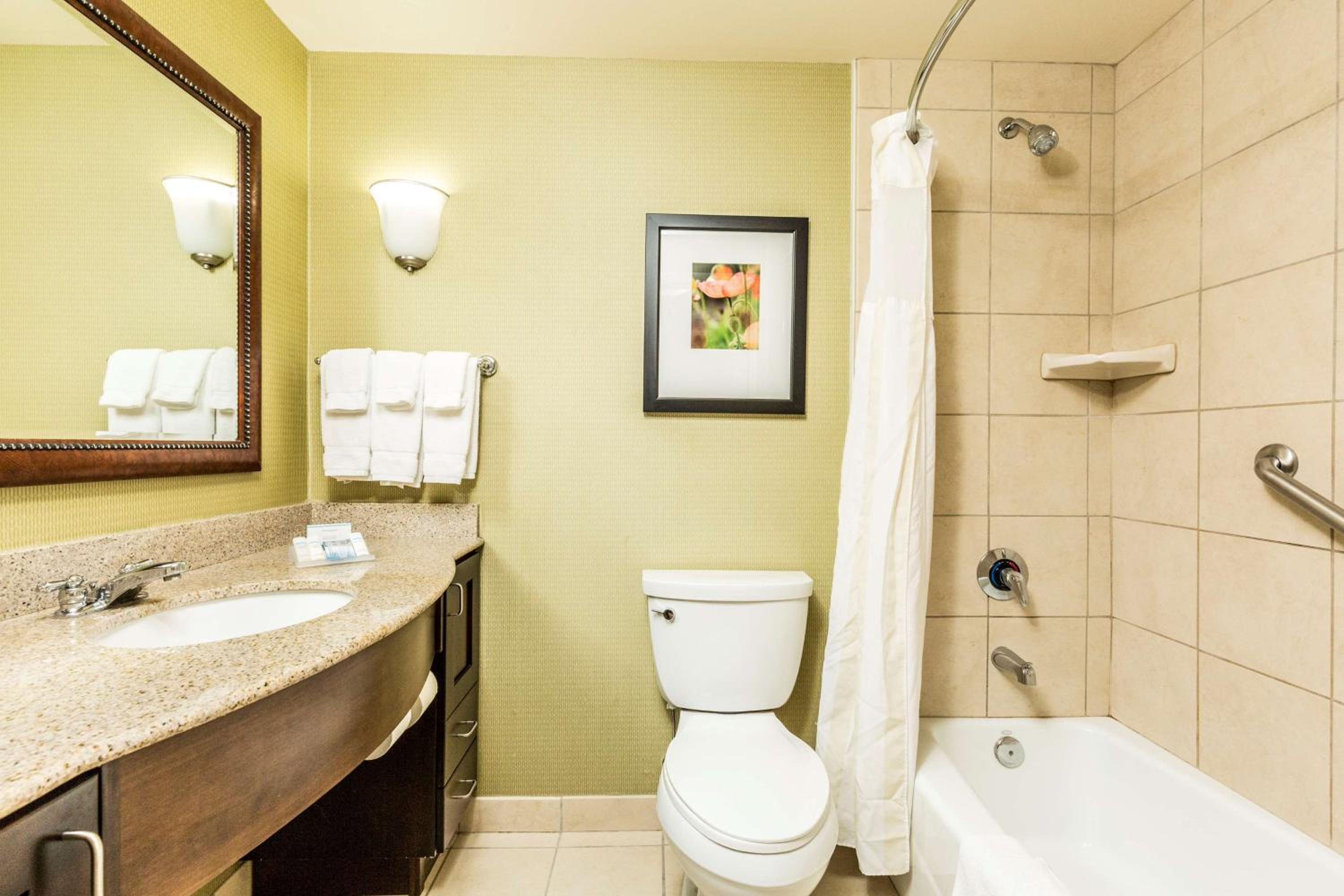 The Hilton Garden Inn St. George offers modern amenities like MP3 compatible radios, in-room coffeemakers, microwaves, and mini-refrigerators.