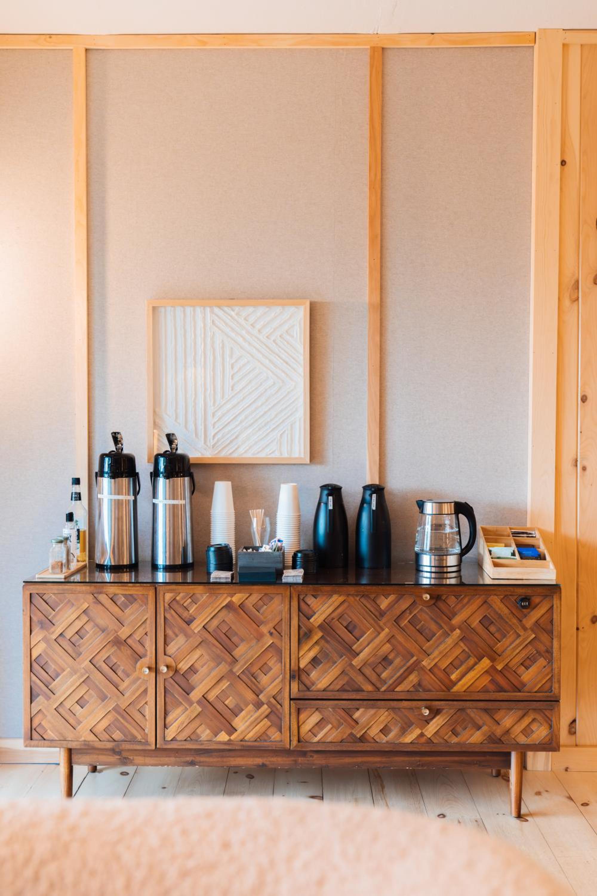 The room was very spartan, there is nowhere to put anything. No desk, no chair, no hooks to deal with winter gear, we ended up with a lot of piles along the walls. The heater/thermostat have a mind of their own and would constantly overshoot the programmed temperature and make the room very hot, as a result we did not sleep very well. The shower has great hot water but a poor design with a fixed piece of glass that doesn't cover much or contain water very well at all. Anticipate a wet bathroom floor after your showers.