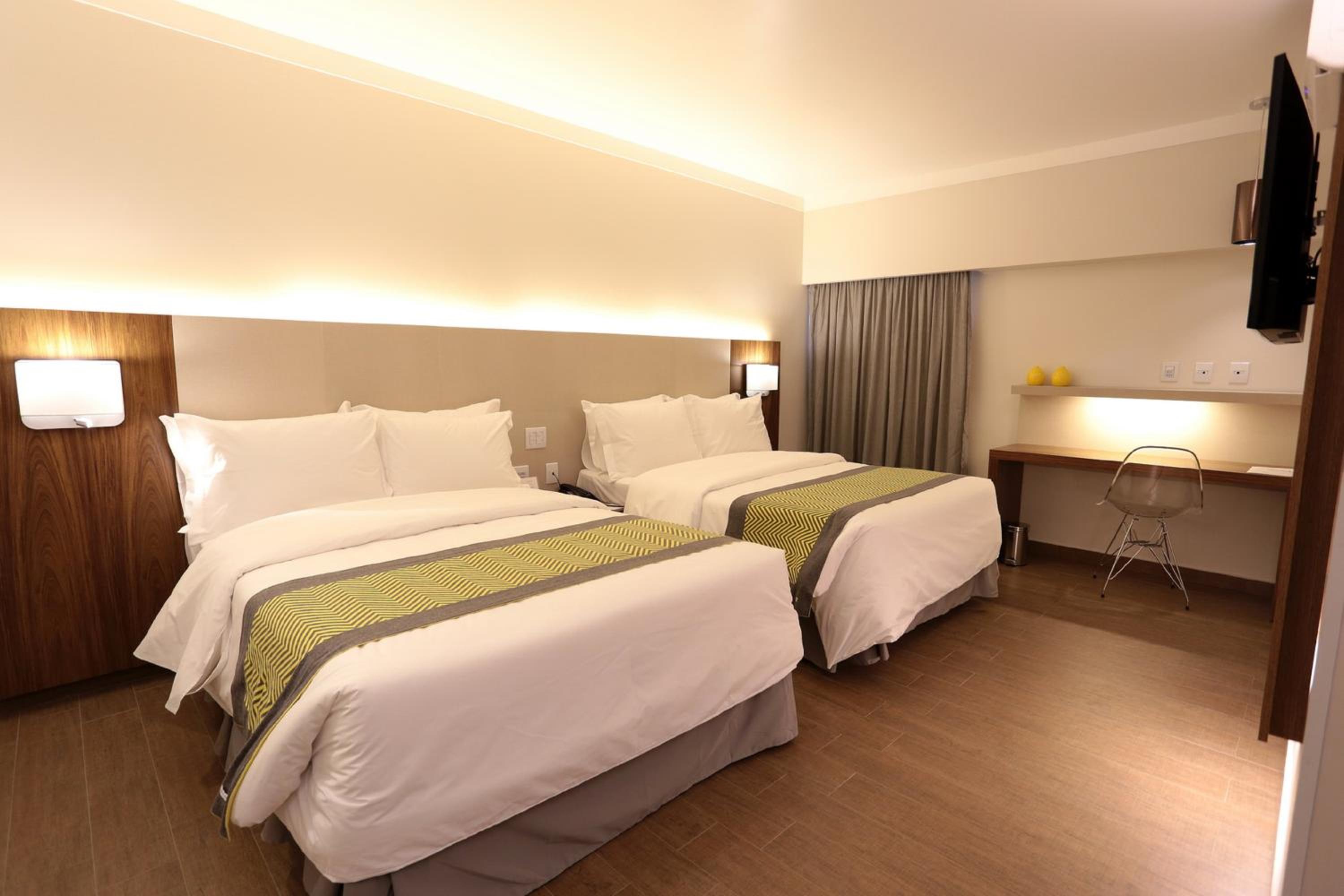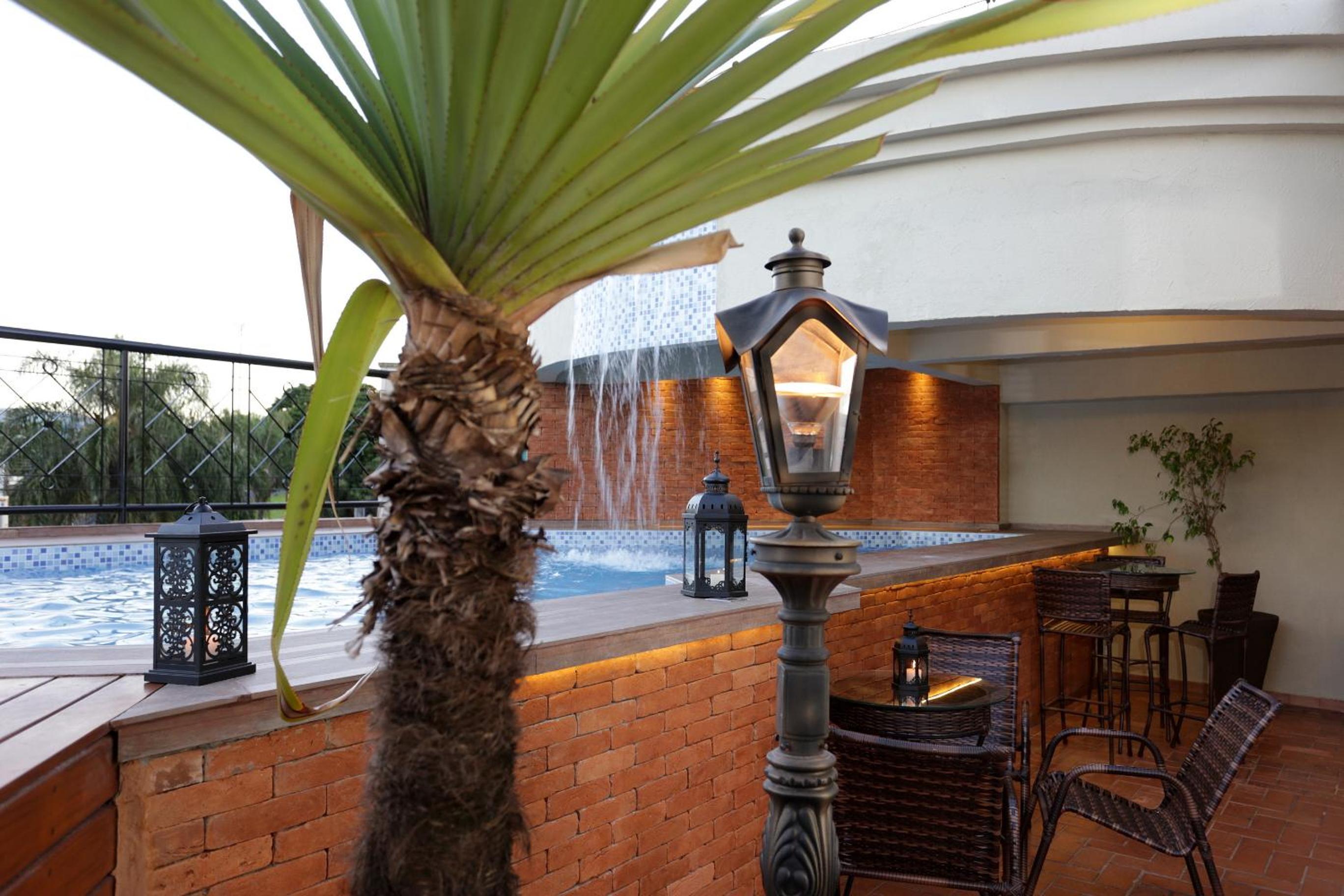 This contemporary hotel in Ribeirão Prêto boasts an elegant water fountain and a glass-walled lobby, setting the stage for a truly upscale experience. Guests can unwind by the pool with a relaxing waterfall or soak up the sun on the wood-decked terrace.