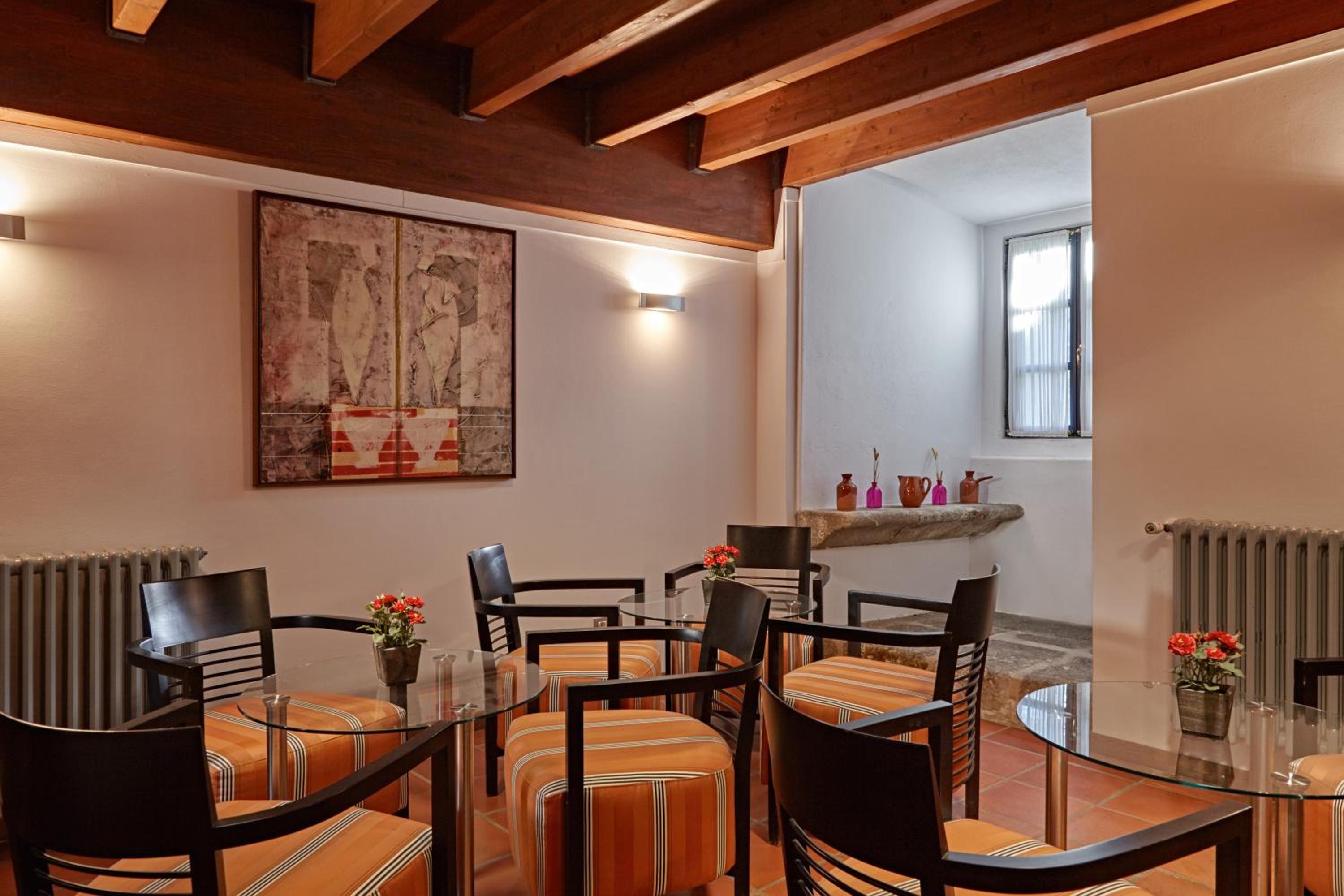 Indulge in the spacious and air-conditioned rooms featuring high ceilings, stone walls, and stunning views of vineyards and woodland. Enjoy modern amenities like a flat-screen satellite TV, minibar, and free WiFi, all while immersing yourself in the monastery's rich history and serene surroundings.
