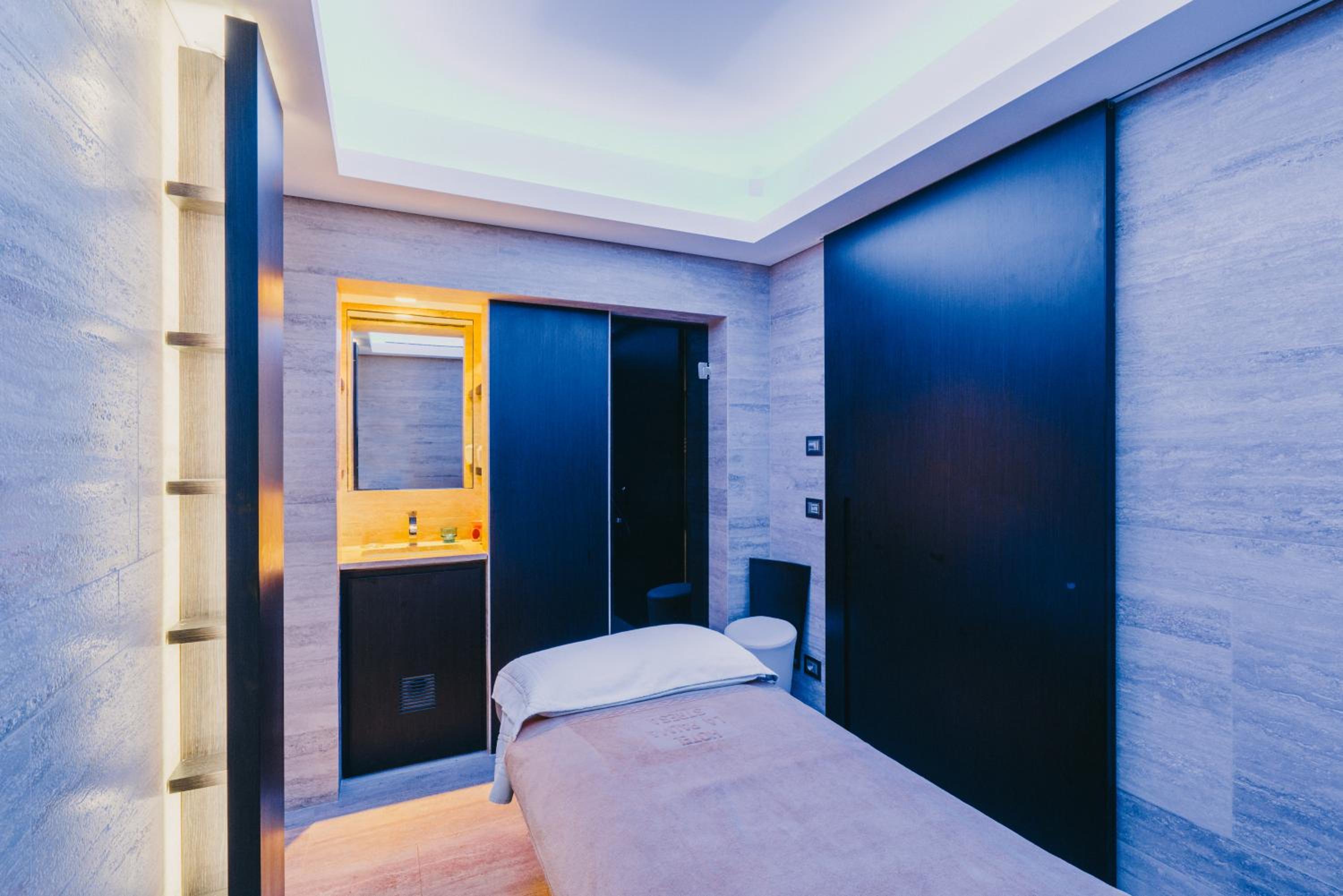 Unwind at the fitness area, wellness center with sauna, Turkish bath, salt cave, and more. Experience sensory showers and relaxation areas.