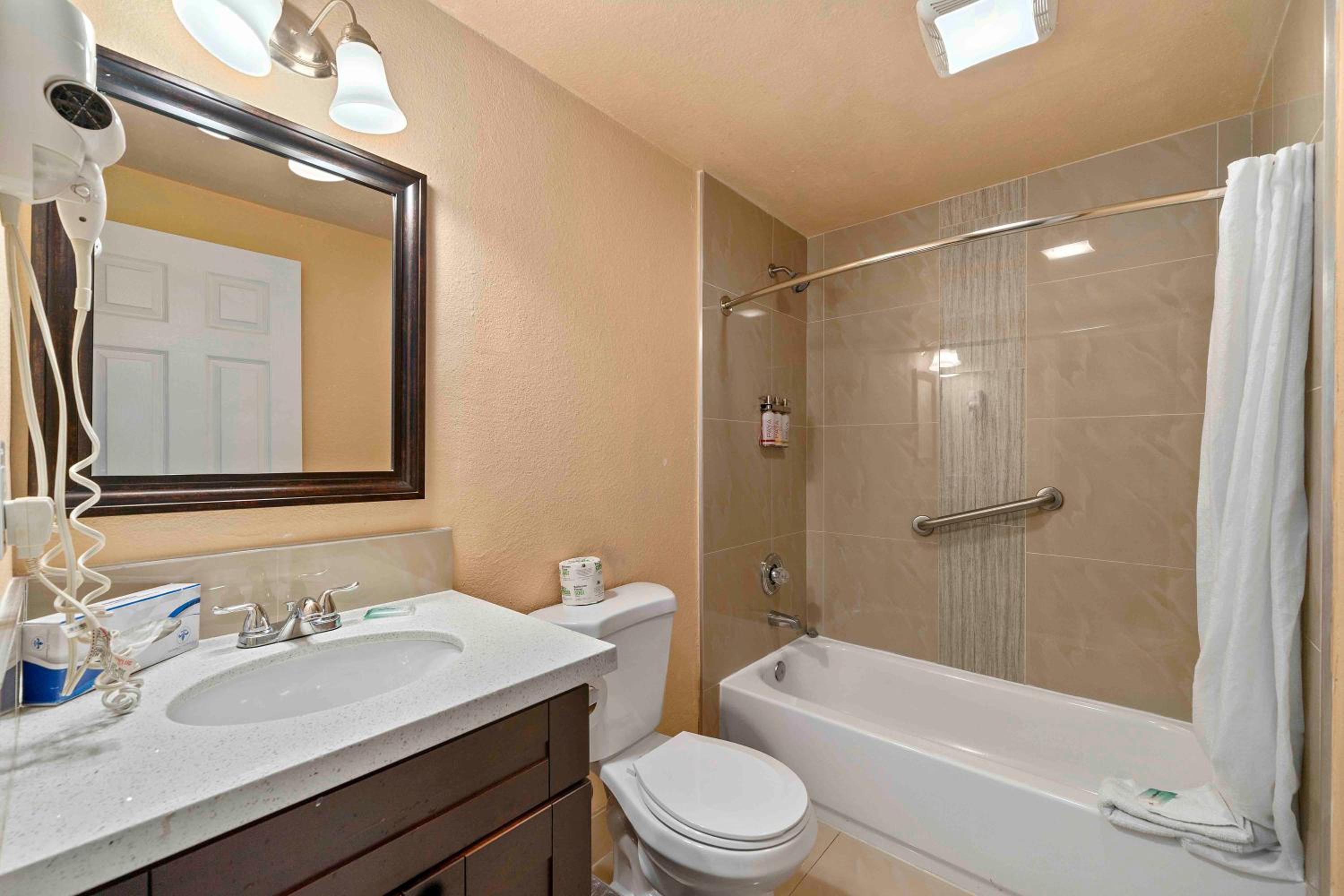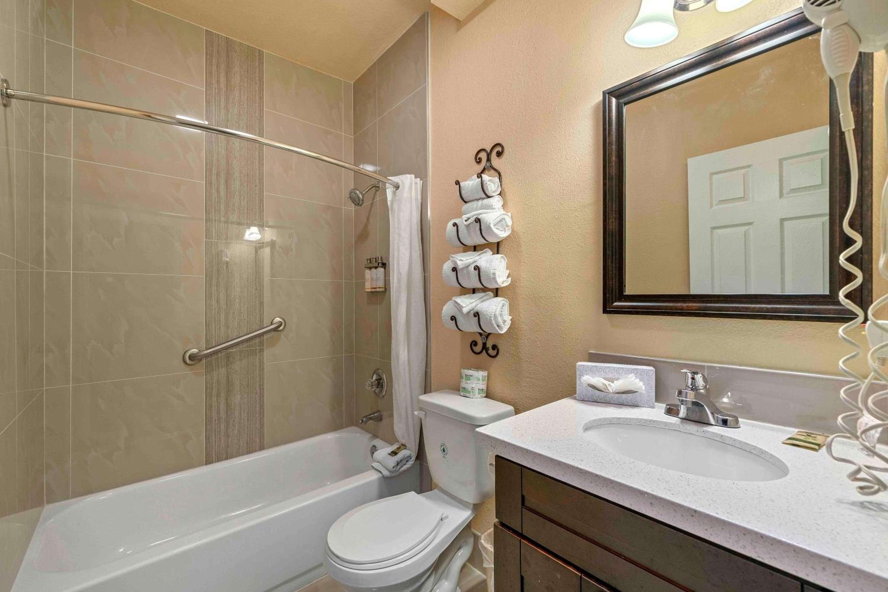 The size of the room was good. Plenty parking. The shower water pressure and temperature was amazing.