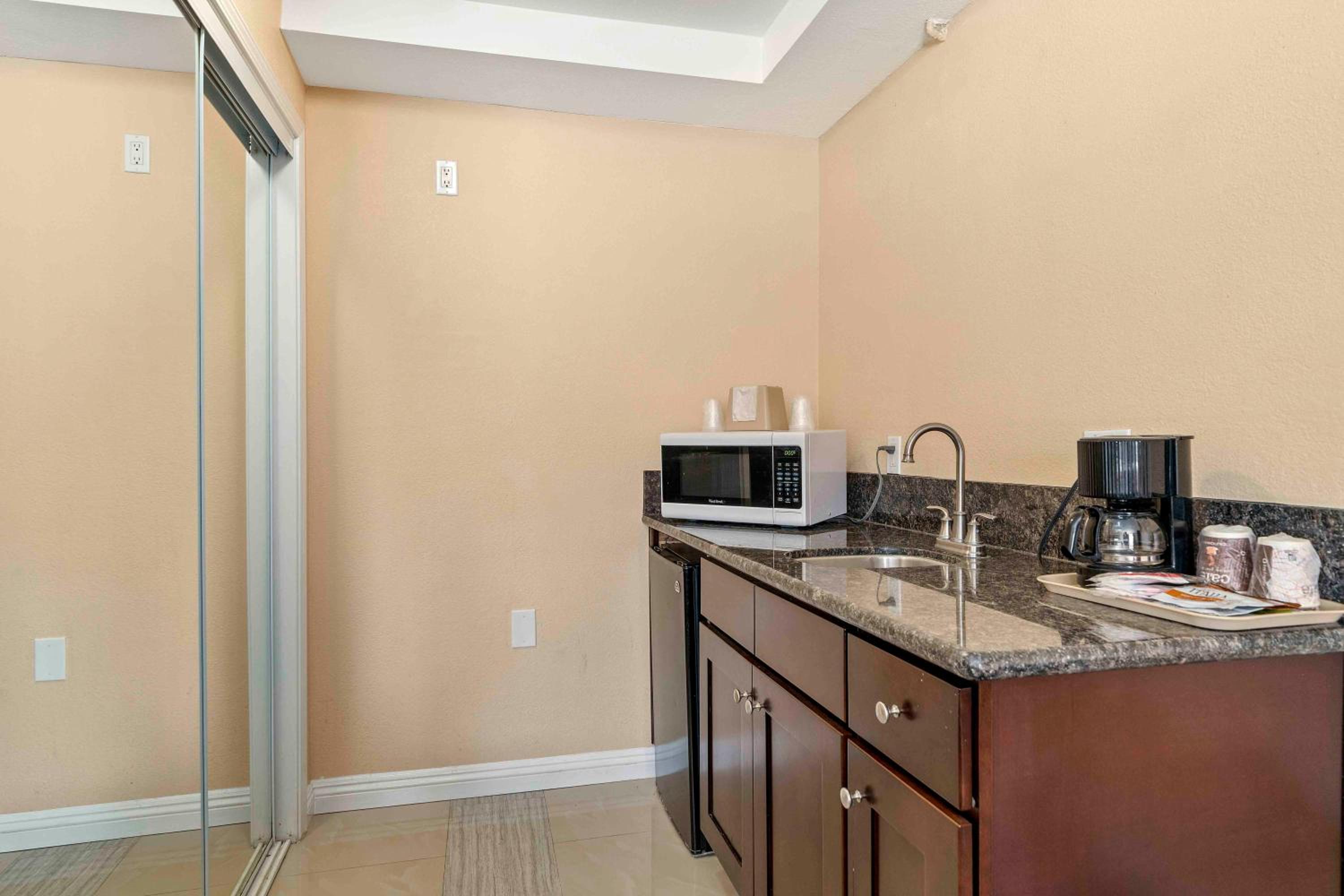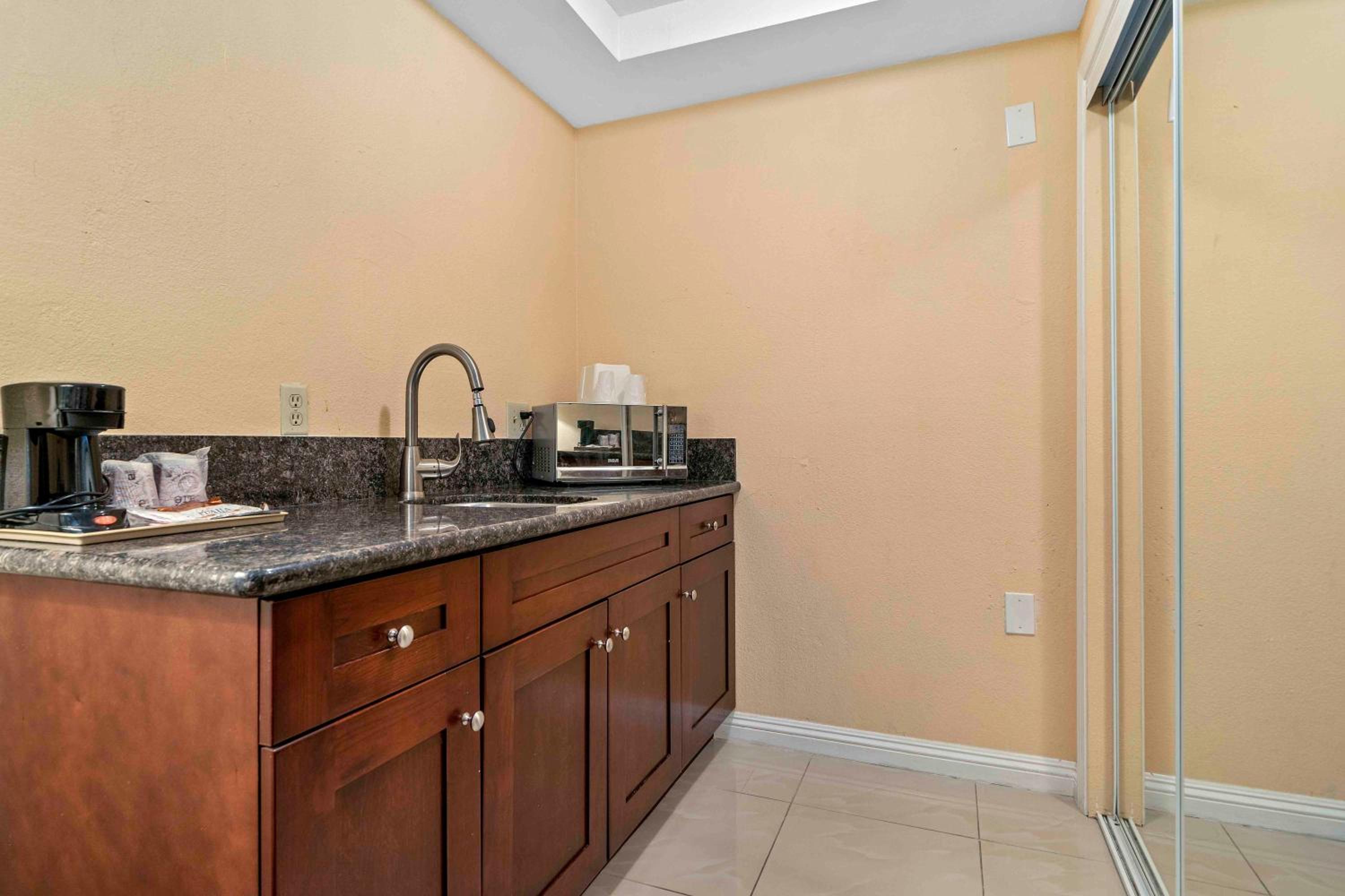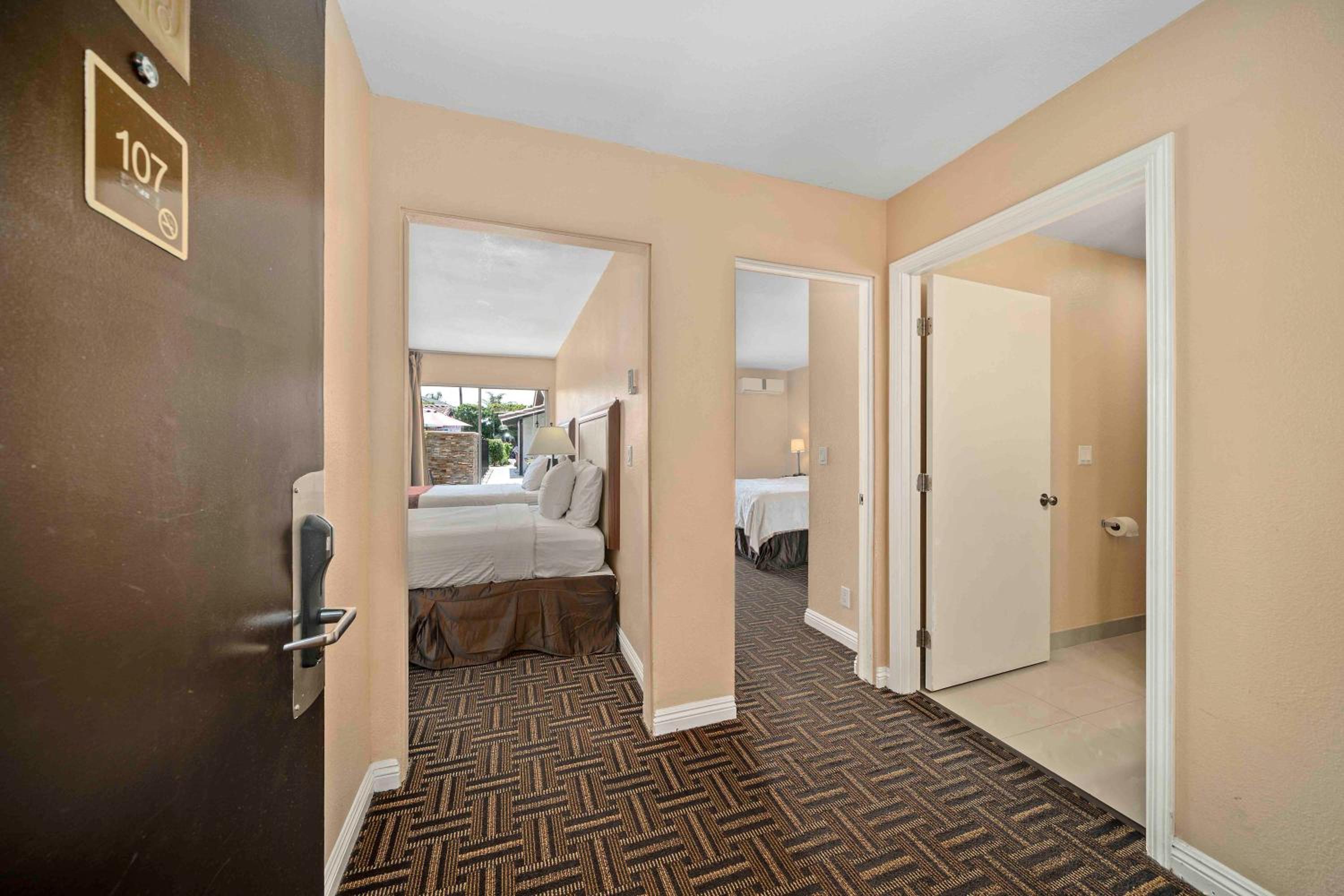 We stayed for one night. The location was suited for what we needed. We booked the suite with 2 queens and 1 king bed. It was perfect to have our children in one room and to have a separate room for the adults. The kitchen area was simple and had enough room for our food. We had plenty of towels, Everything was clean. Check in was strictly at 3 and checkout was easy. The only issue was parking. There were not enough spaces. We had to park by the check in area.