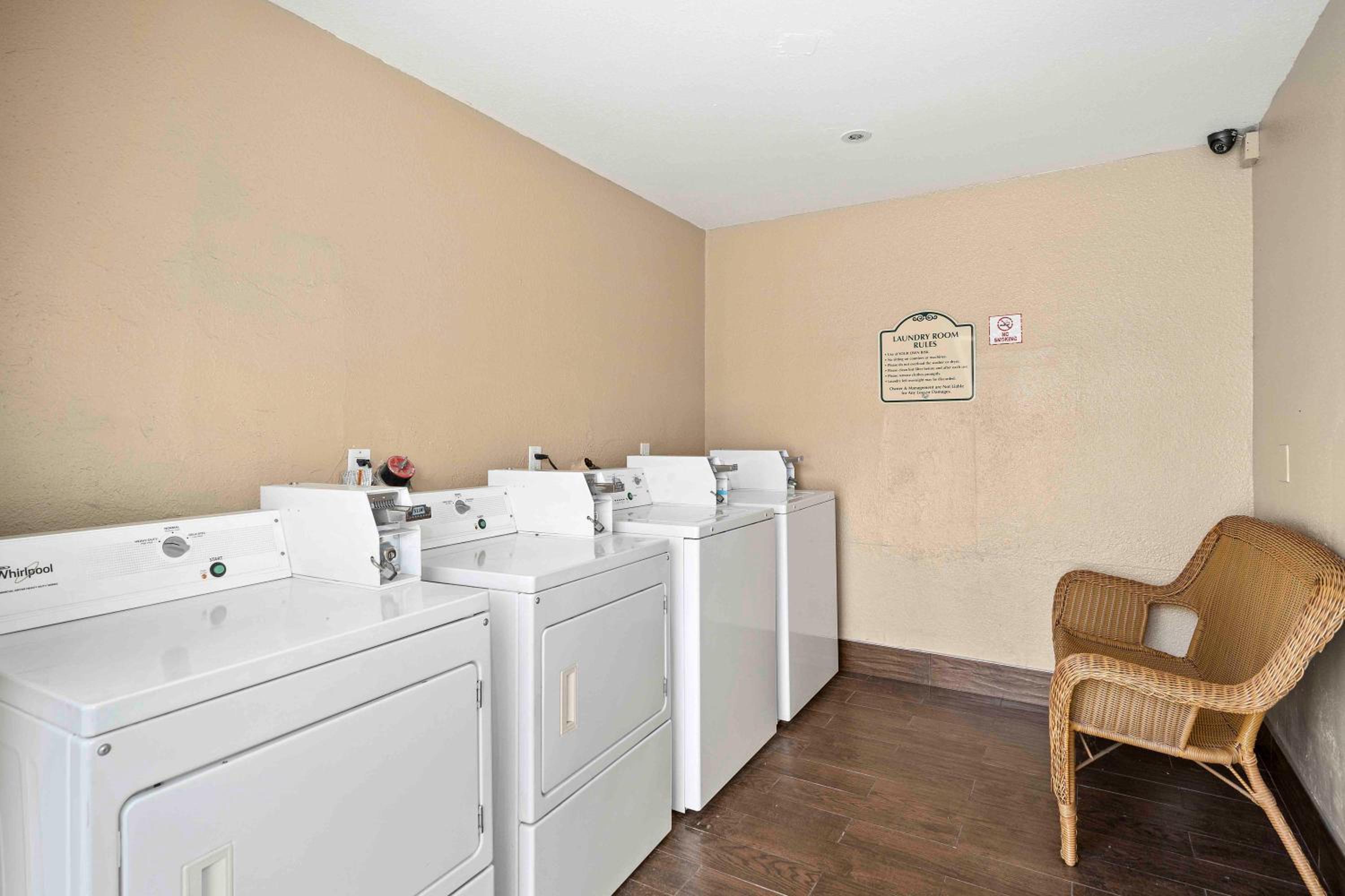 The rooms were VERY DIRTY. I was on the second floor and there was dried blood on the stairs. I told management when I first checked in, the blood was still there the next day. The carpet and the chair had visible dirt on them. The mini fridge was not cold.
