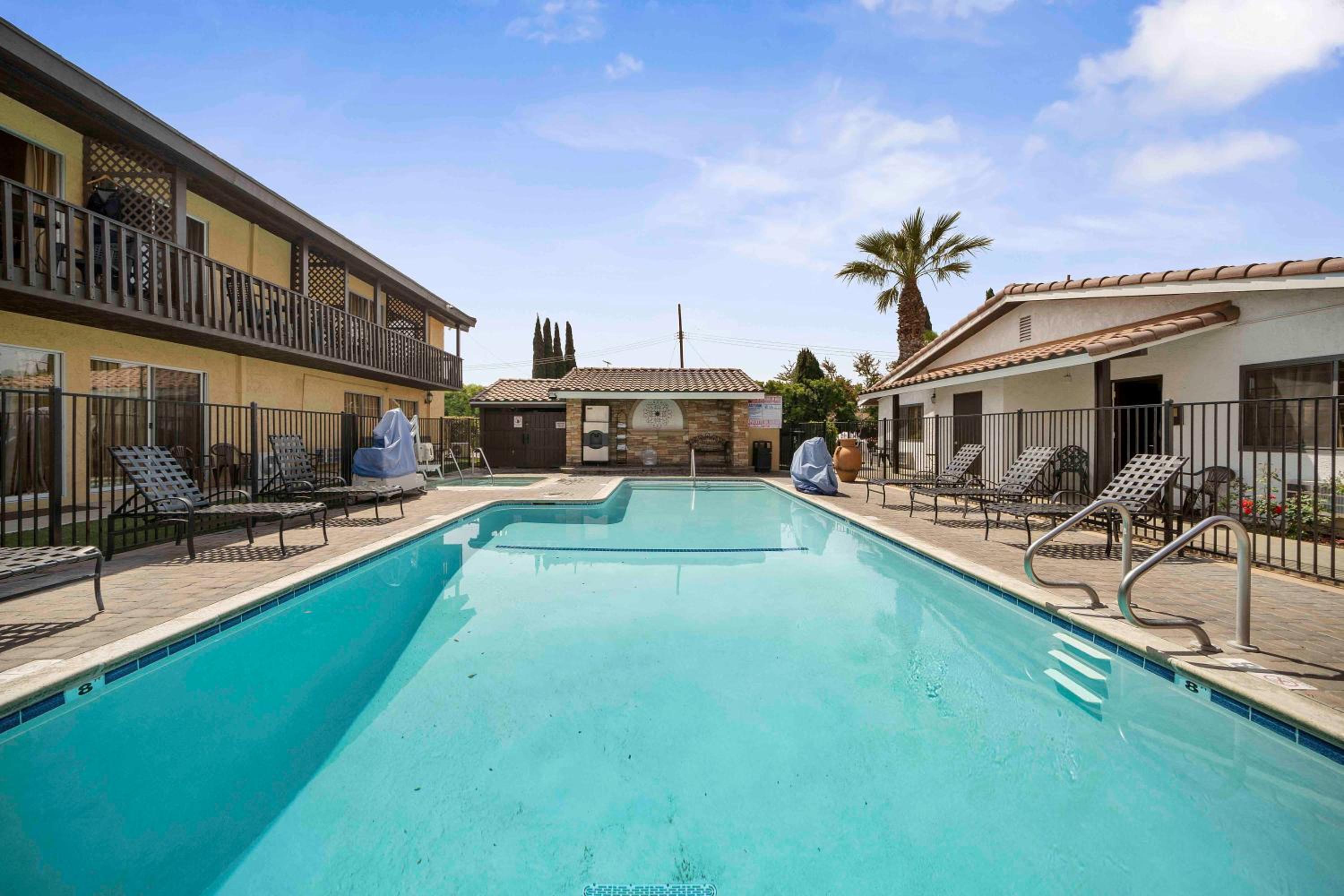 Indulge in a boutique experience at The Lemon Tree Hotel in Anaheim, complete with an inviting outdoor pool for relaxation and enjoyment.