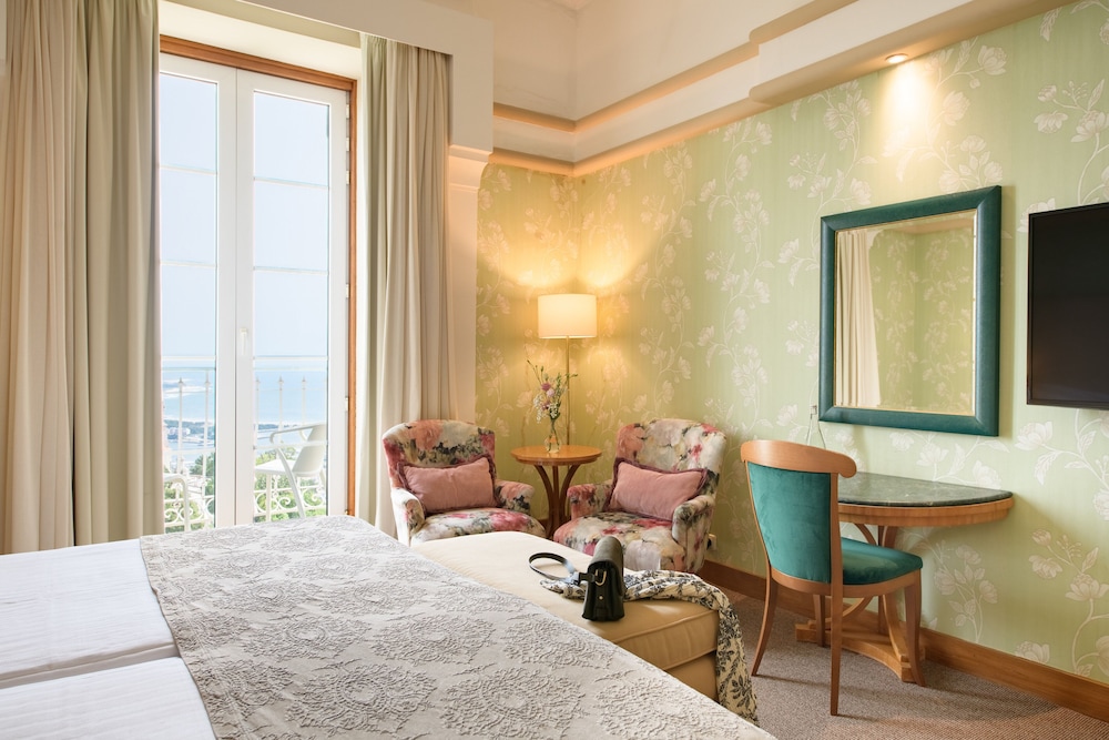 The hotel has the most beautiful views. We were given an upgrade and had a room overlooking both the sea and a the famous church which overlooks the city. At the same time we had a welcome gift of wine, heart biscuits, and grapes. The biscuits and grapes were replenished each day. The breakfast at the hotel was quality and in a beautiful room. This hotel is recommended. The staff are very kind