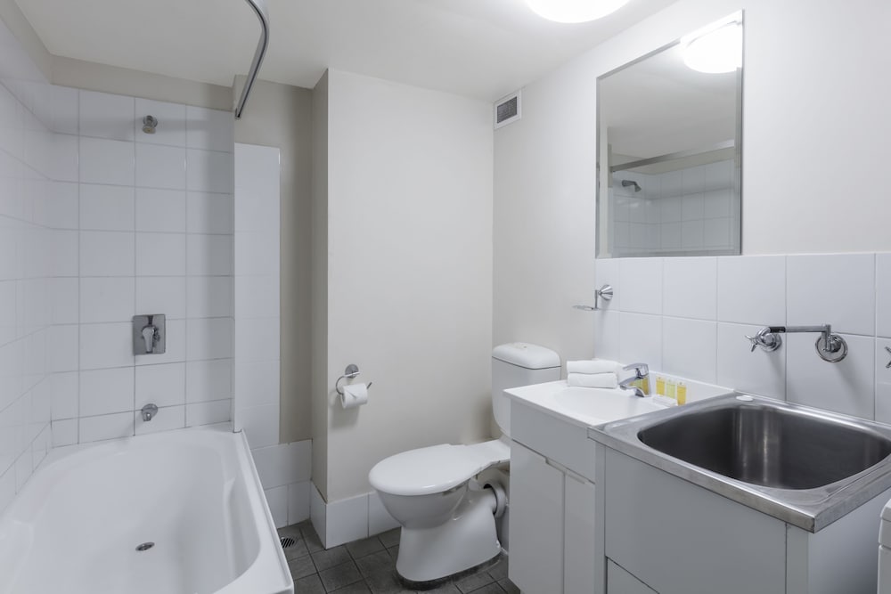 Room was a great size. Bathroom was terrible with tap for shower over bath at end so you got wet turning on. Room smelt horrid. Nice little balcony. Plenty of cupboard space but no bench space in bathroom. Towels had to go on toilet or washing machine. Not sure whether a smoker had been in there or not. Not a great area to stay