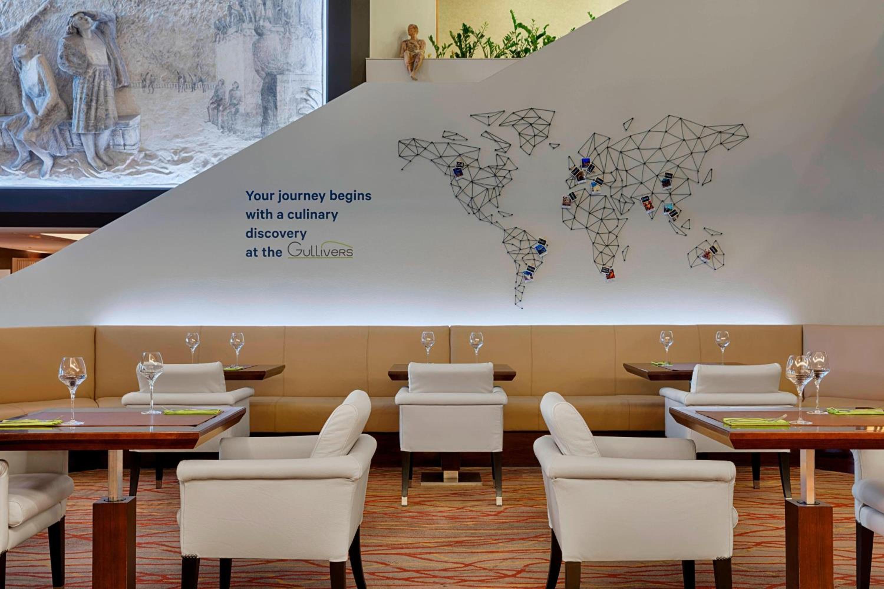 Savor a range of dining options at Gullivers Restaurant, from a breakfast buffet to chic à-la-carte dinners and cocktails. Unwind with a traditional Belgian beer at the bar, ensuring a delightful culinary experience.