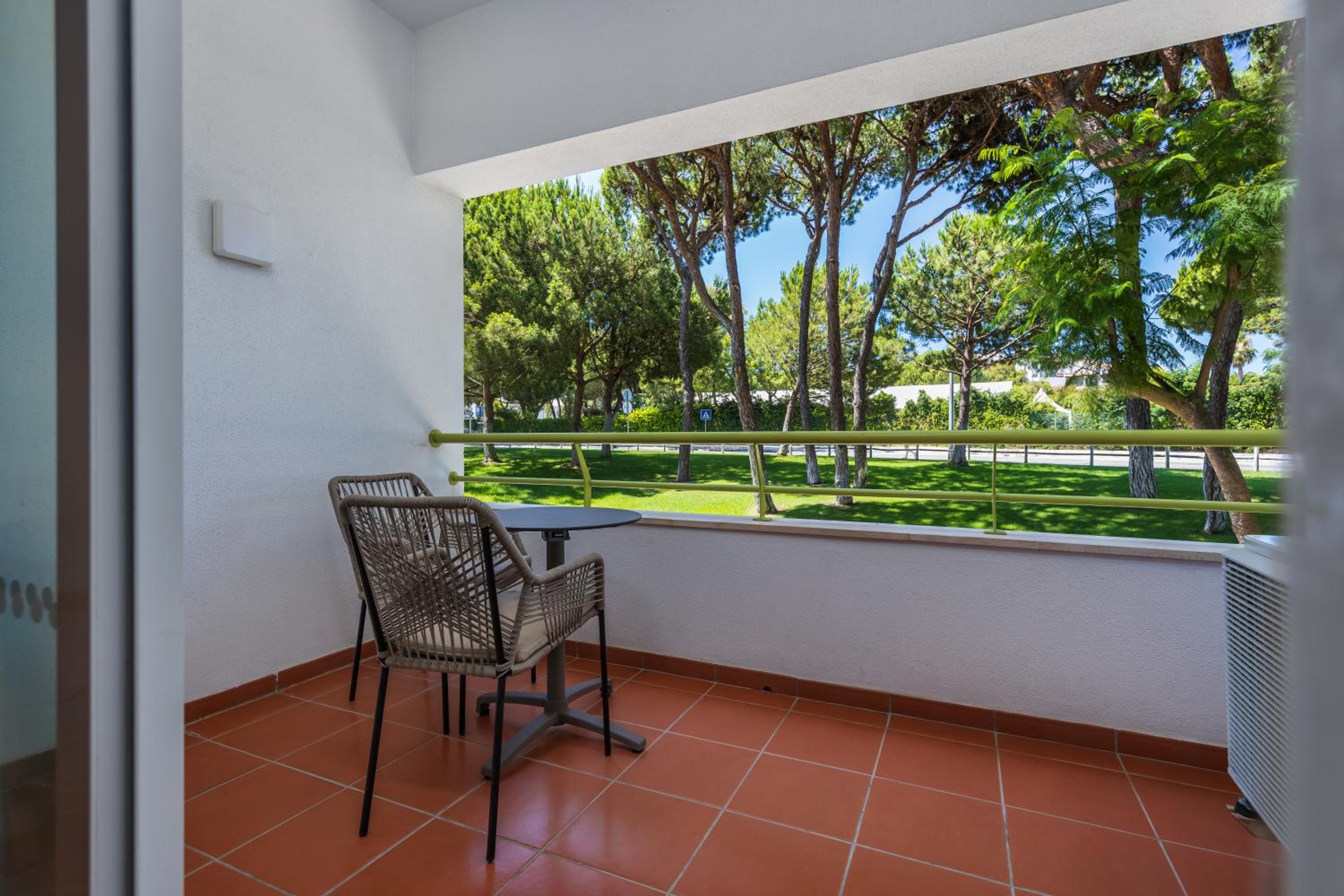 The rooms are great. We stayed in 221, lovely double balcony overlooking Pine cliffs football pitch. It also overlooked the road so there was a bit of noise when sat out. Good cooking facilities we eat in twice, ready made lasagne an frozen chips and salad from supermarket prepared no problem. Good size fridge. FREE safe hire and free pool towels.