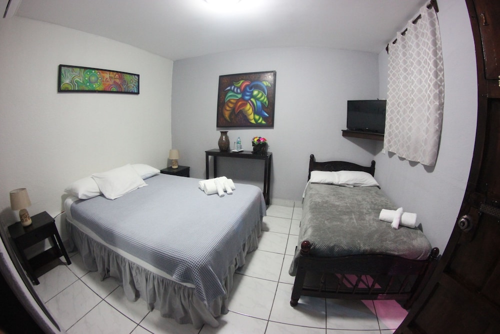 Very clean and great location. This place has a restaurant and small bar. The swimming pool is located in center of all the room so you will hear the people in the pool in your room.
