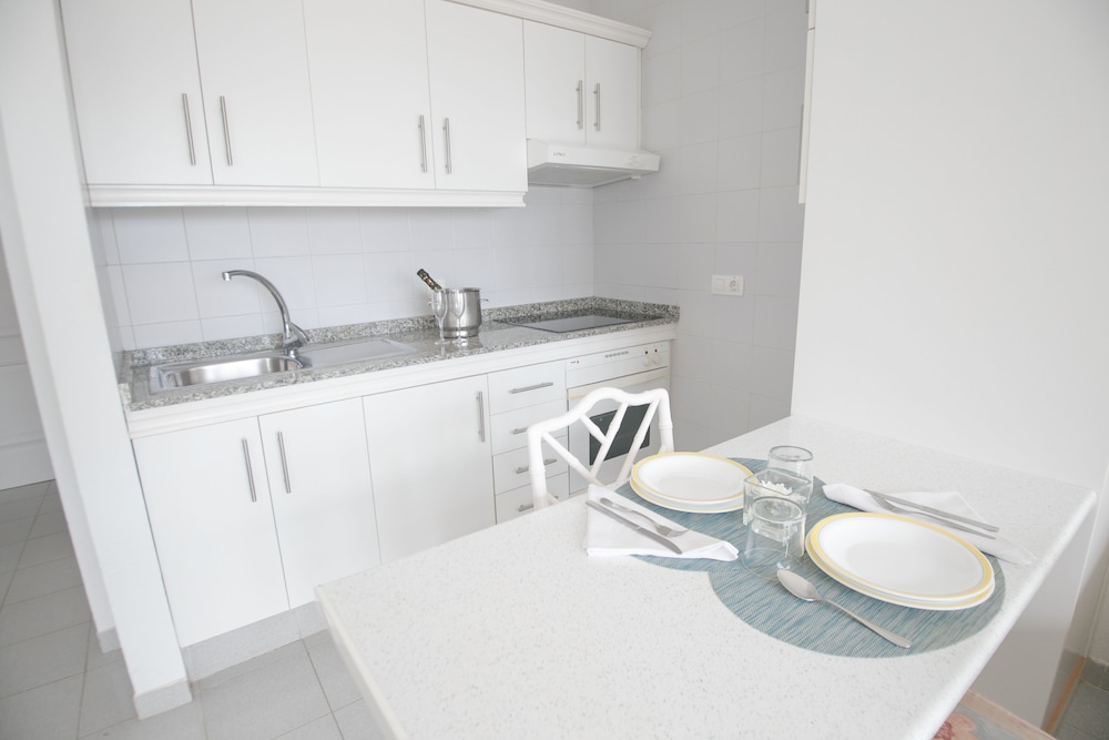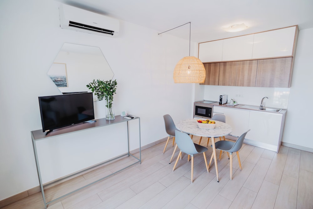 Fabulous complex, very small. Great apartment though could do with a couple of small things like a bread knife/sharp knife and a teapot! The sheets and towels were changed a bit too regularly for me, so not that environmentally friendly. All staff very polite and happy to help.
