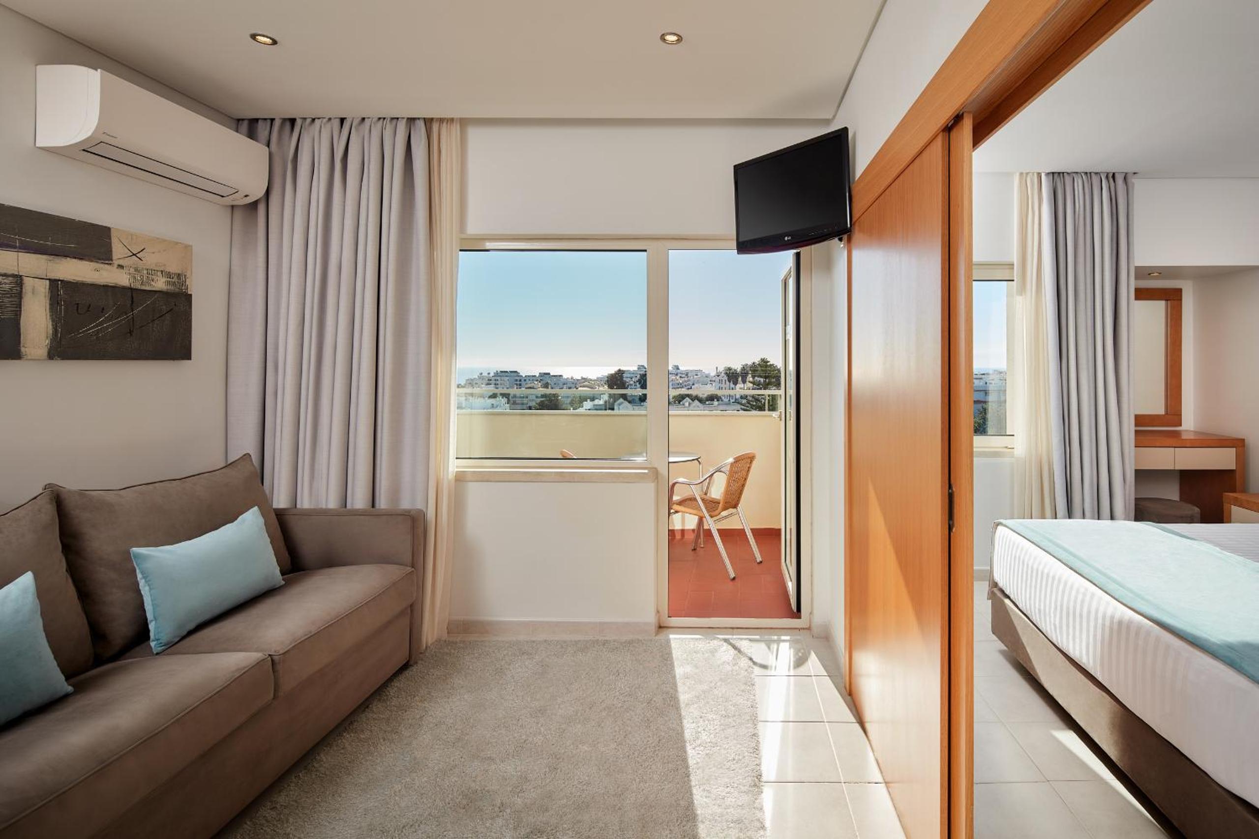 Bright Rooms with Balconies: Albufeira Sol Hotel & Spa offers modern rooms with balconies, full bathrooms, air conditioning, and free WiFi.