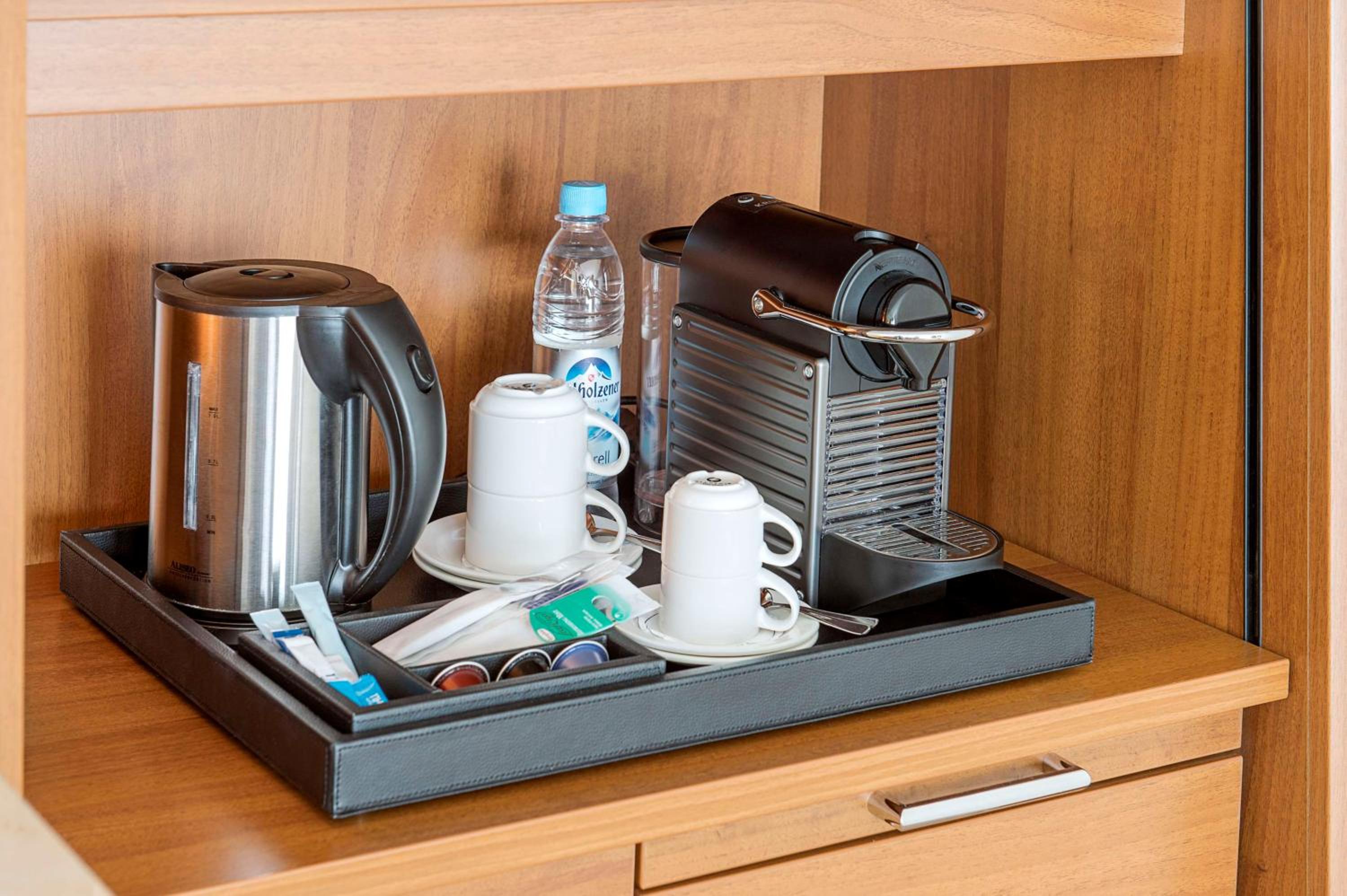 Das Hotel ist schon sehr deutlich in die Jahr gekommen. Was eindeutig fehlt ist eine Kaffeemaschine auf den Zimmer.