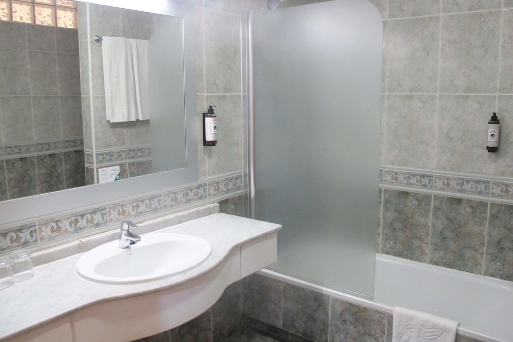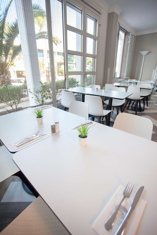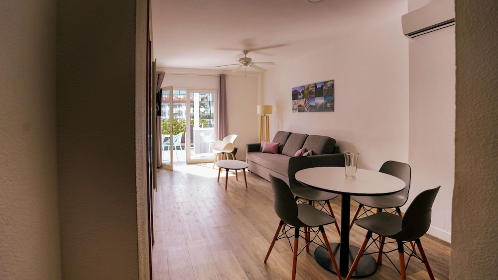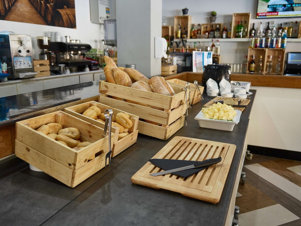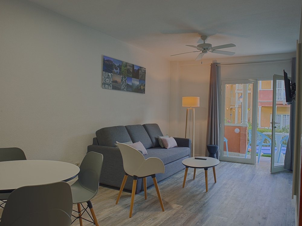 Mooie grote kamer met terras en tuintje. Heel proper. Enkel 's nachts wakker geworden door luidruchtige buren. Geen respect voor de nachturen. Ontbijt is lekker. Mercadona kortbij. Vriendelijke bediening in restaurant/bar. Vriendelijkheid receptie hangt ervan af wie er staat.
