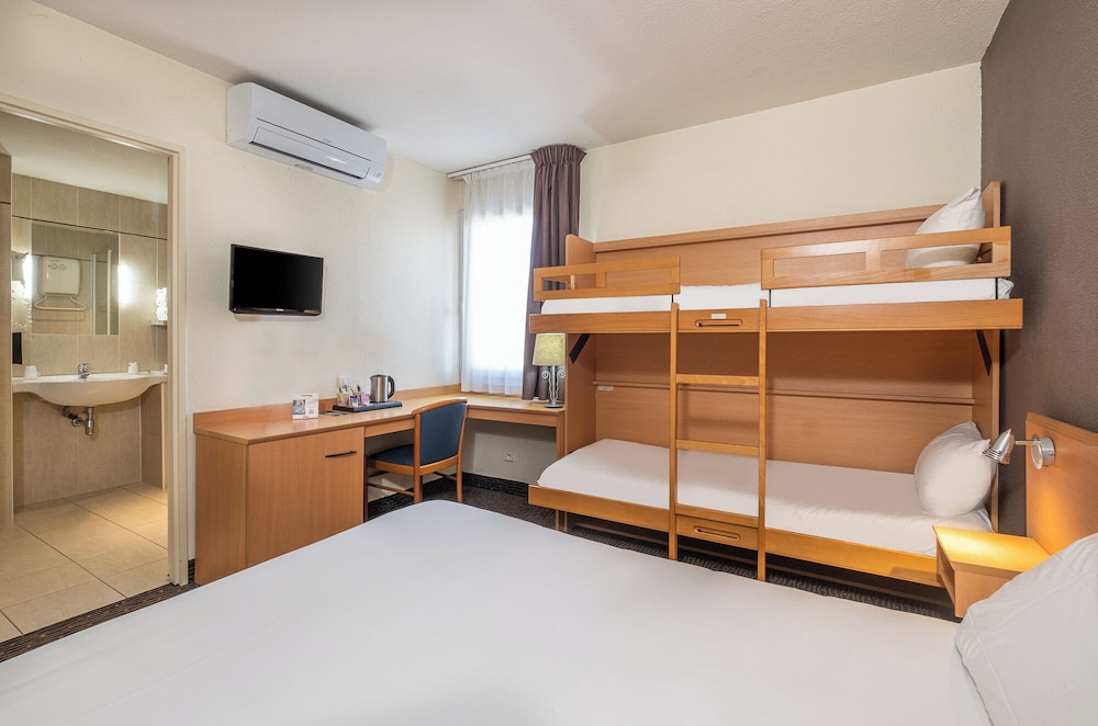 Literie confortable, chambre un peu petite mais fonctionnelle, proximité du centre commercial pratique et piste cyclable tout proche...personnel agreable et souriant
