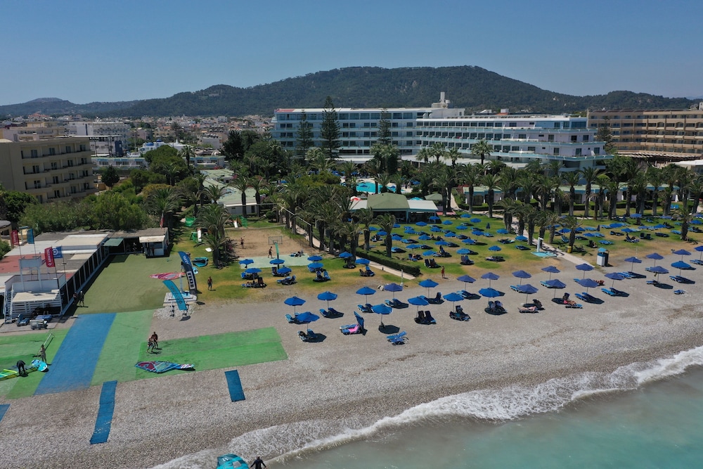 There are better areas in rhodos for a beach holiday with less wind, quiter sea and sandy beaches.